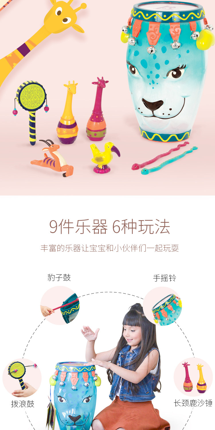 Барабаны, музыкальные инструменты, погремушка, музыкальная интеллектуальная игрушка, леопард
