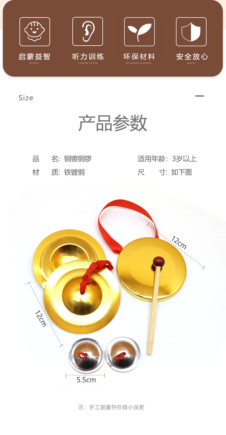 Детский медный комплект для детского сада, медные ударные инструменты