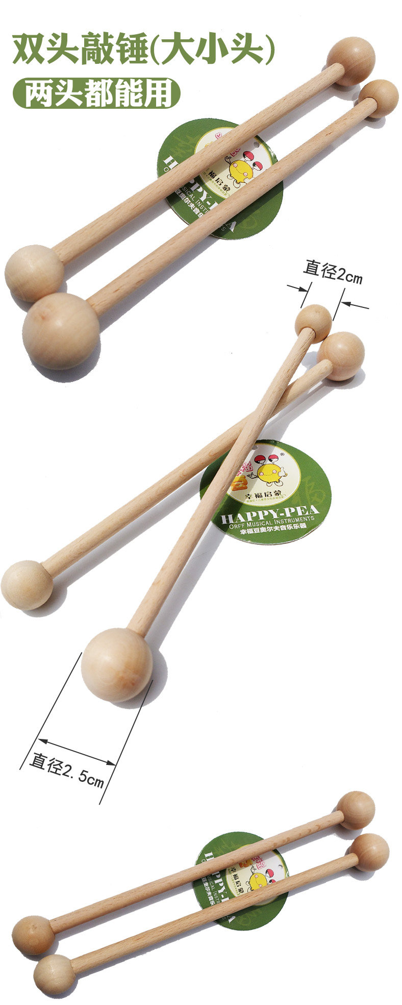 Деревянный двойной удар молотка размер головы деревянный стук молоток, стучащий стержень детские перкуссионные аксессуары, стук молоток сплошной древесина круглая голова