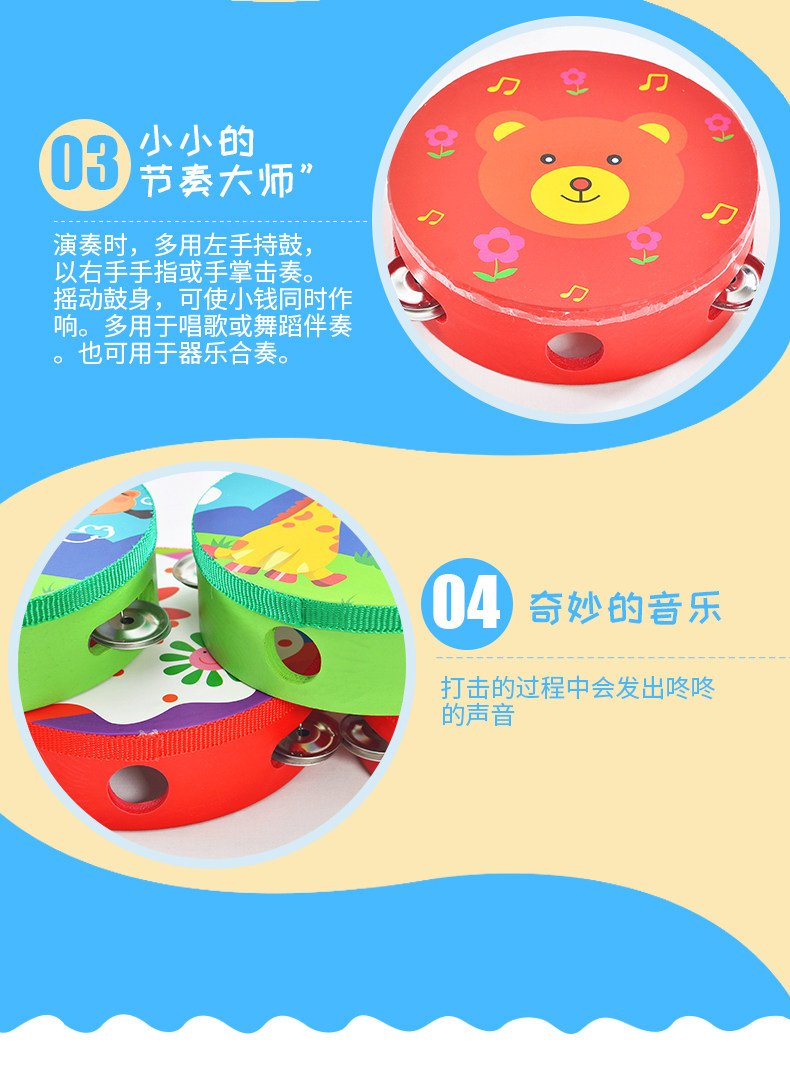 Игрушка для детского сада, мультяшные ударные инструменты, деревянный бубен, обучение