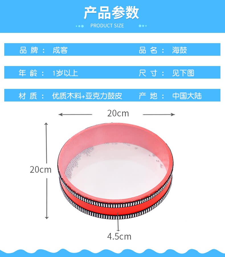Барабан-качалка, экологичные деревянные морские музыкальные инструменты, 8 дюймов