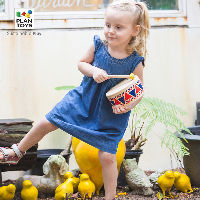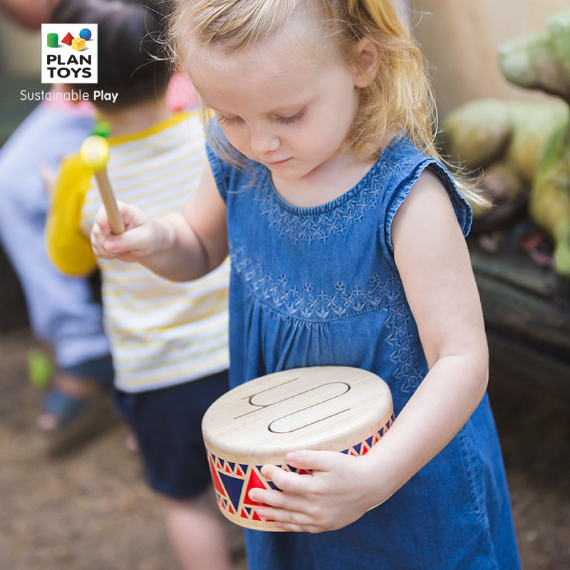 Plantoys Детский барабан музыкальный инструмент игрушечный музыкальный просветление Knight Wood Drum 6404 подарок