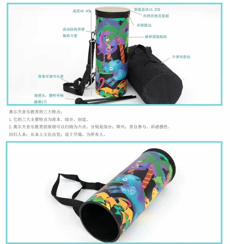 Тропический лесной поясной барабан, детский ударный инструмент Орфа, музыкальный детский малый барабан, образовательная просветительская обучающая игрушка, ударный барабан