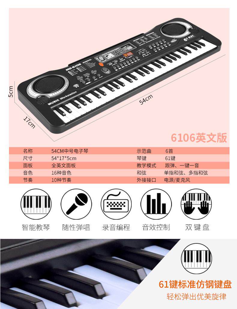 Электрический синтезатор, универсальное пианино, музыкальные музыкальные инструменты, игрушка для мальчиков для начинающих, 61 клавиш, 37 клавиш
