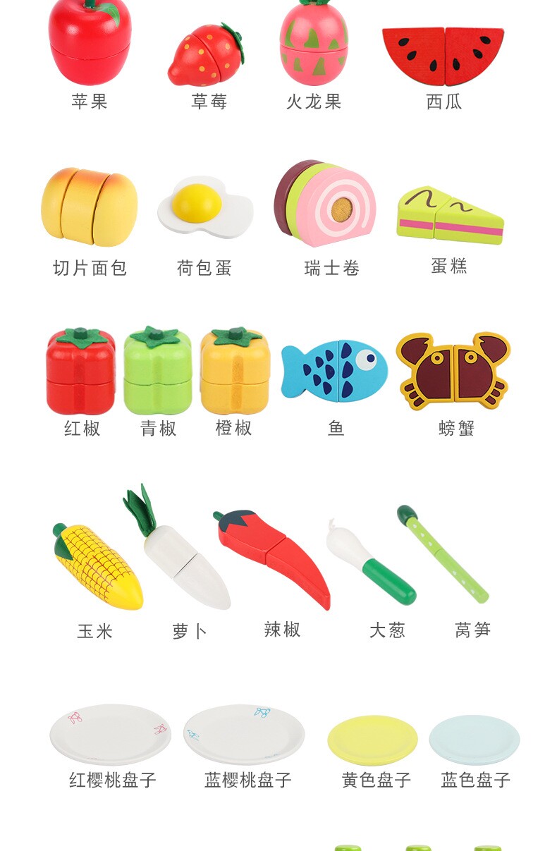 Детские деревянные магнитные овощи и фрукты срезаны Le Girl Boy имитируют фруктовые игровые кухни кухня