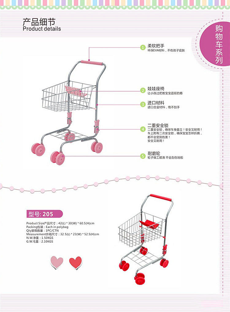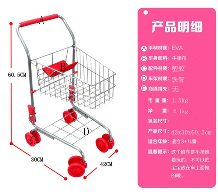 Материал - это металл из сплава, металлическая часть очень гладкая, не царапает и выглядит как корзина в супермаркете. Она может действительно подтолкнуть его к супермаркету, чтобы купить. Развивать детские возможности покупки, я знаю, что это стоит Покупка