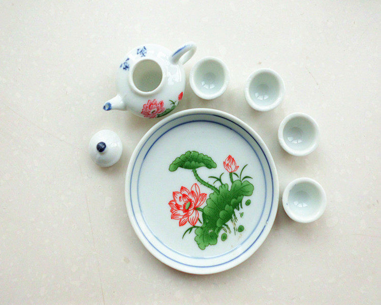 [Набор из 4 юаней содержит четыре чайника и тарелку]