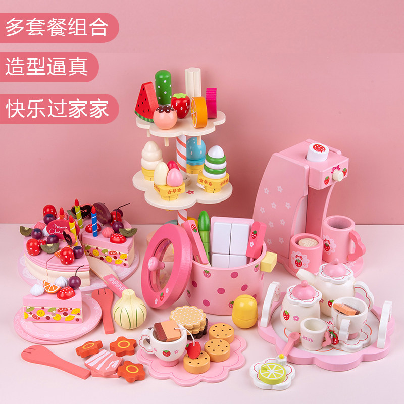 Детская семейная игрушка, деревянный комплект для разрезания, реалистичный чайный сервиз, подарок на день рождения