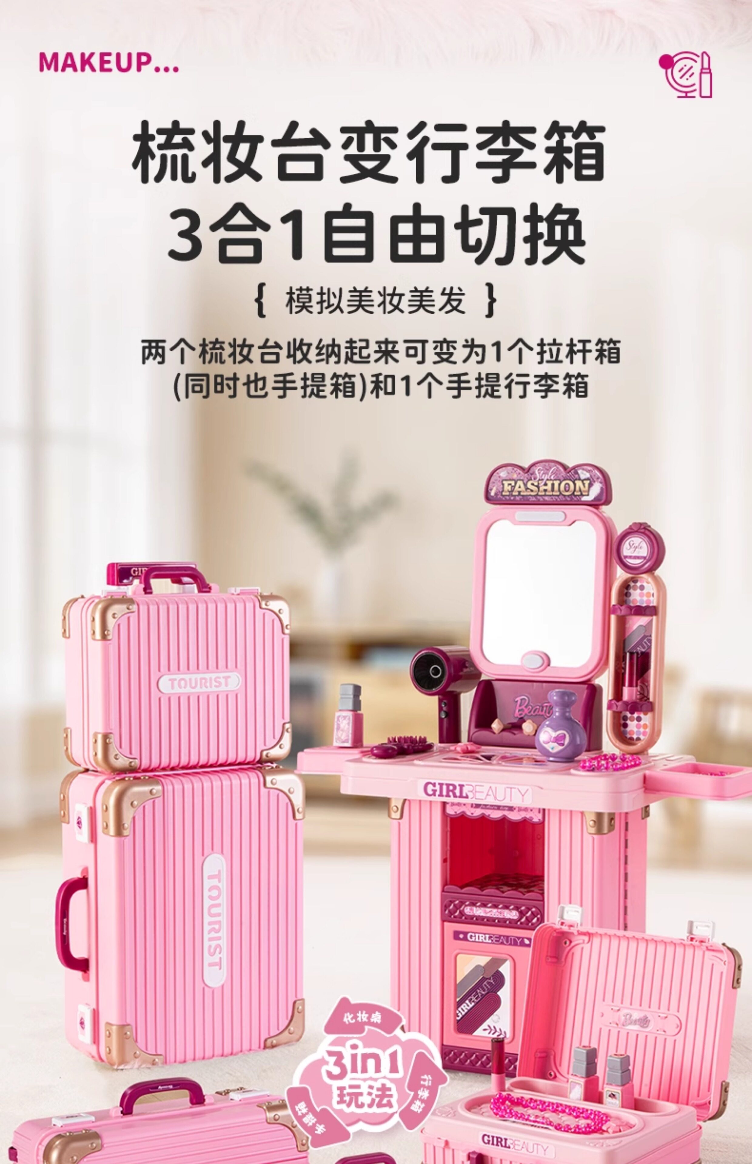 | Цвет: | Туалетный чемодан-принцесса 3 в 1 розовый (1 большой, 1 маленький), [Маленький размер] Туалетный чемодан-Princess Pink |