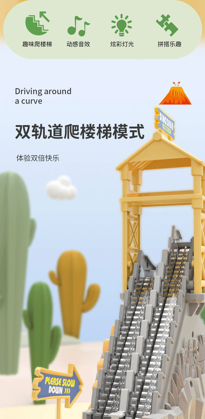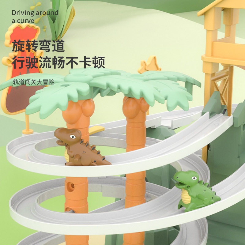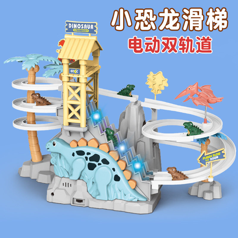 B.Duck, электрический динозавр со светомузыкой с рельсами, горка, игрушка