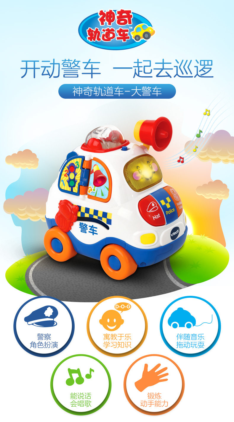 Полицейская машина с рельсами, модель автомобиля для младенца, музыкальный реалистичный транспорт, игрушечная машина