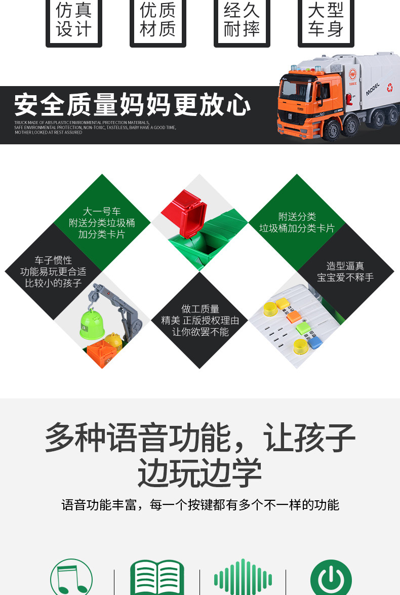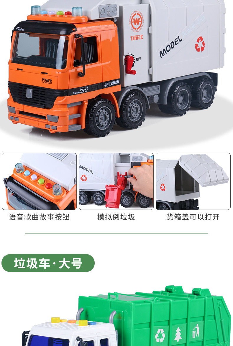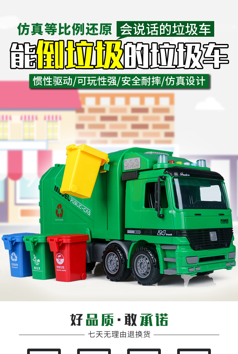 Реалистичное мусорное ведро, детская инерционная игрушечная машина, гигиеническая большая ударопрочная инженерная модель для мальчиков, сортировка