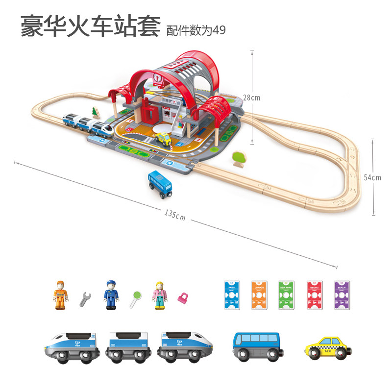Детский поезд, деревянный электрический комплект, интеллектуальная игрушка с рельсами для мальчиков и девочек