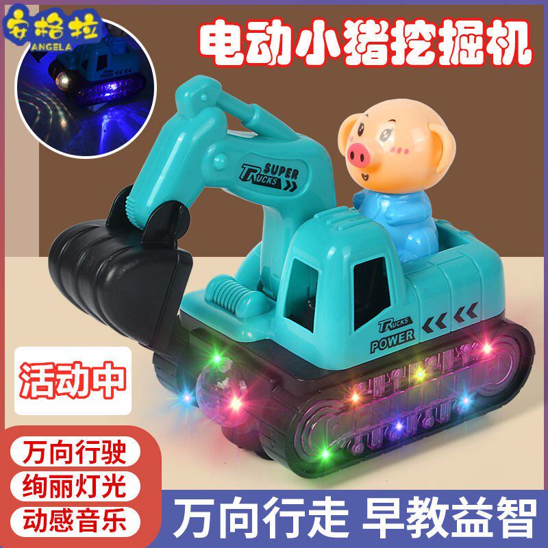 Электрический музыкальный экскаватор, легкая универсальная игрушечная машина для мальчиков, поворотные колеса