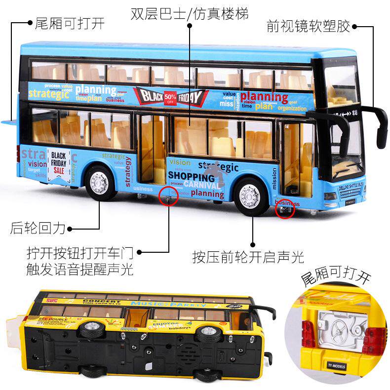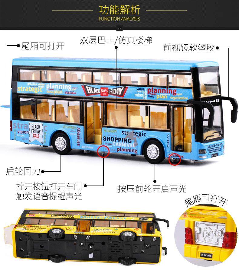 Автобус, двухэтажная металлическая игрушечная машина, реалистичный общественный транспорт для мальчиков