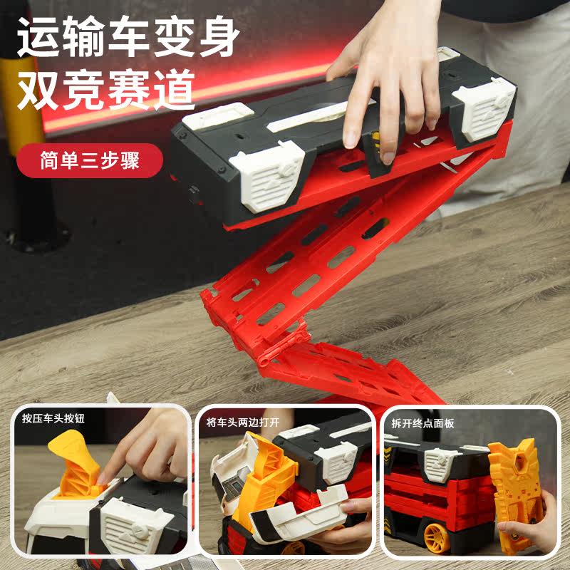 Детская игрушечная машина с рельсами, трансформер, складной инерционный велосипед, металлическая система хранения, комплект, транспорт, грузовик