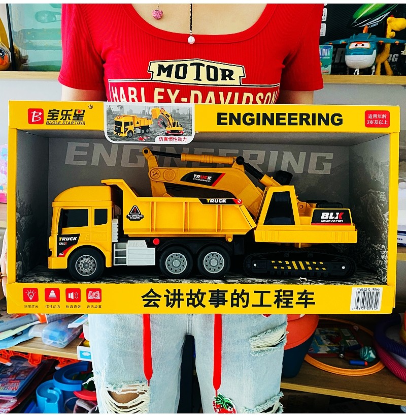 Игрушечная машина, инерционный экскаватор, детский транспорт со светомузыкой, подарок на день рождения