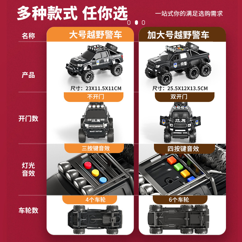 Внедорожник, полицейская машина, металлическая большая игрушечная машина, модель автомобиля для мальчиков, дорожная полиция, 3 лет