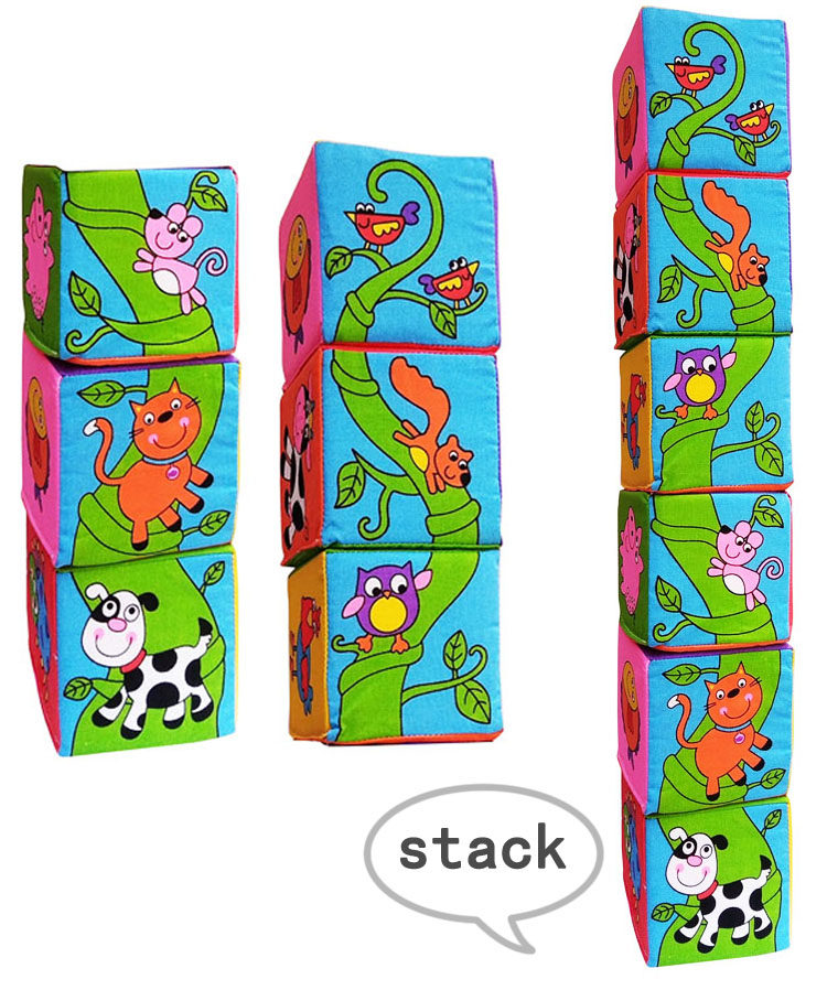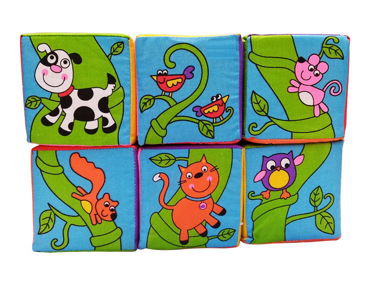 6 тканевых кубиков с пенопластовым наполнителем и красочными изображениями животных. Мягкий и безопасный, идеально подходит для сжимания, броска и сборки. Прогрессируйте, сопоставляя 12 пар животных и присоединяясь к животным, идущим по тропинке.