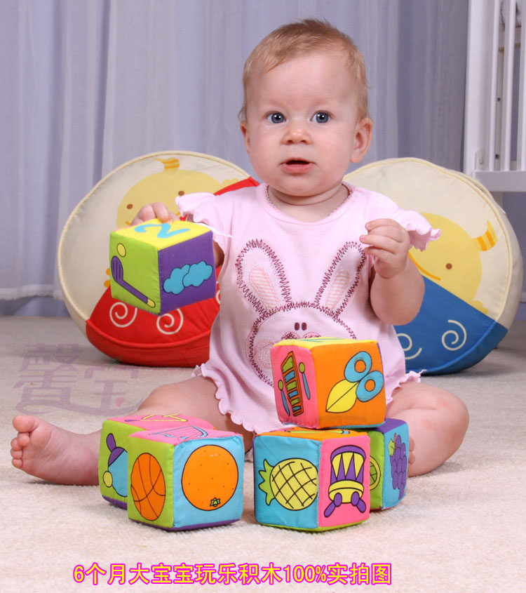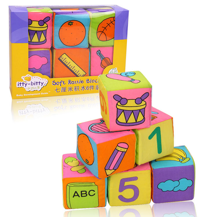 6 colourful foam-filled fabric cubes