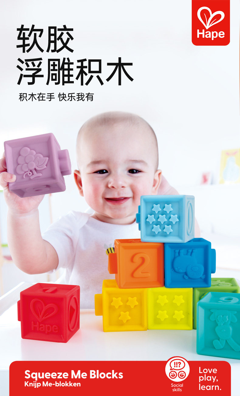 Hape Конструктор из мягкой резины, интеллектуальная игрушка, дженга, 6-12 мес., раннее развитие