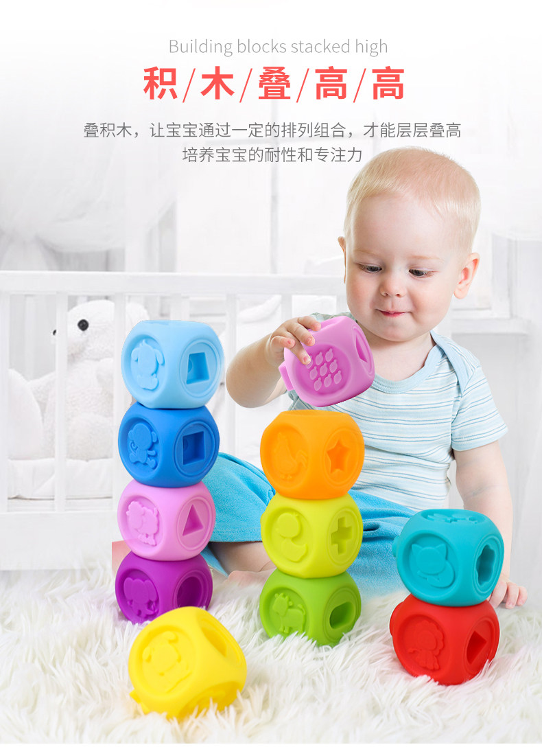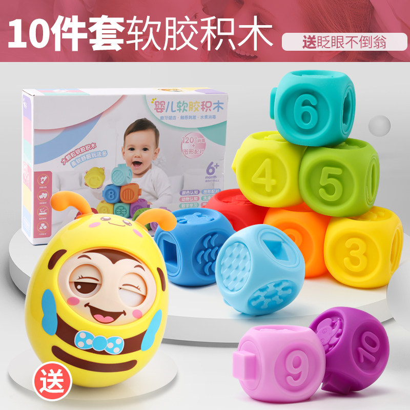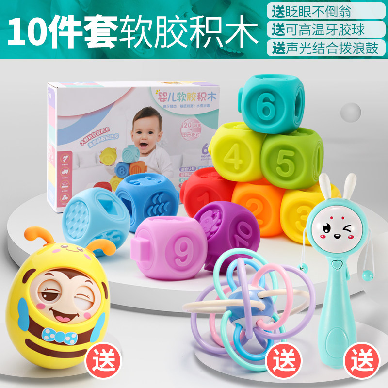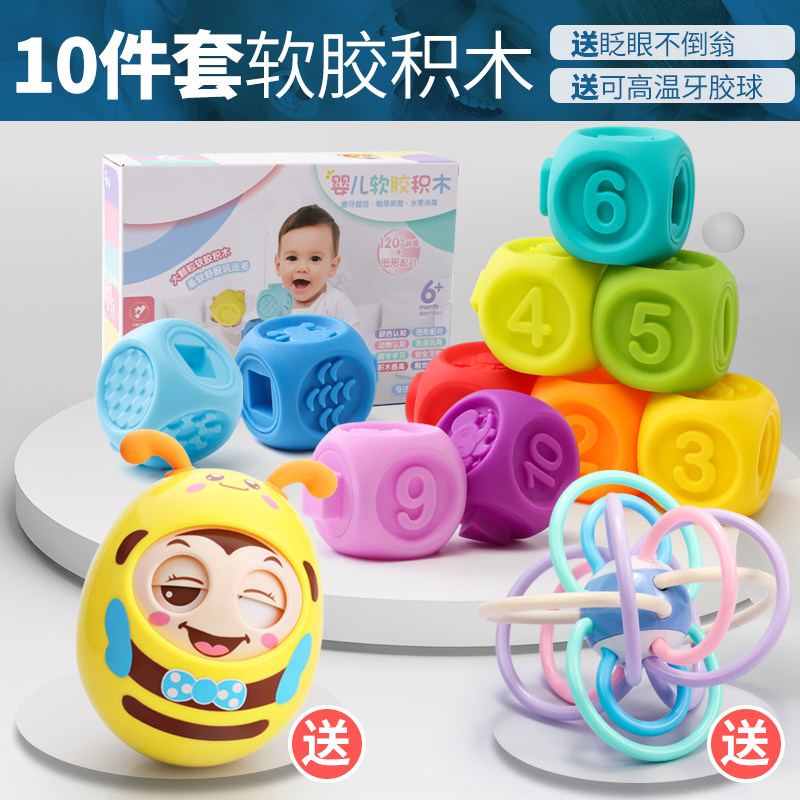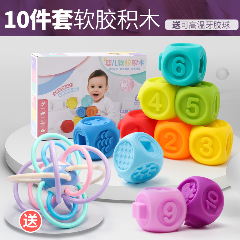 Мячик для рук из мягкой резины, погремушка, массажер, прорезыватель, конструктор, детская игрушка для новорожденных, 3-6-12 мес.
