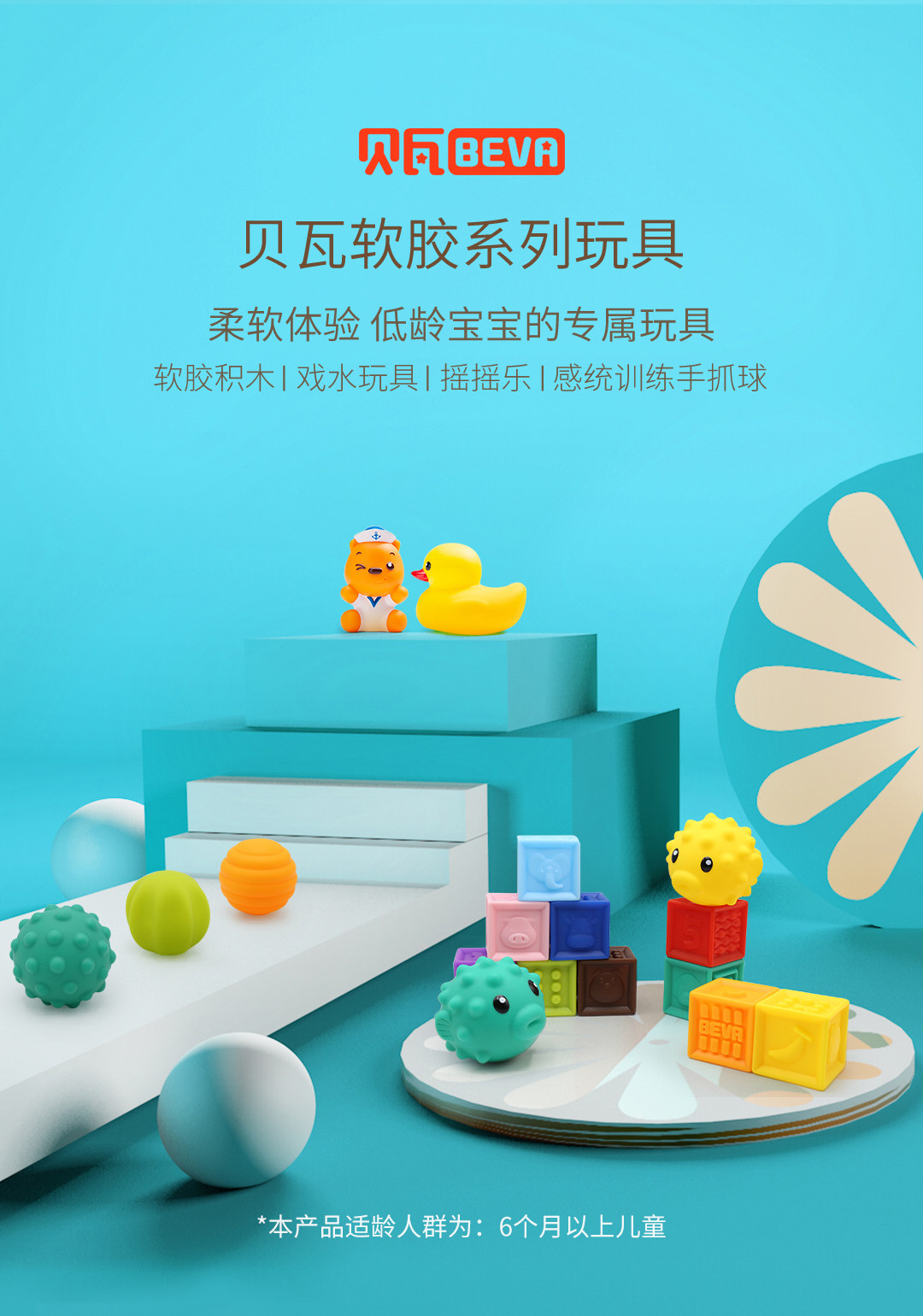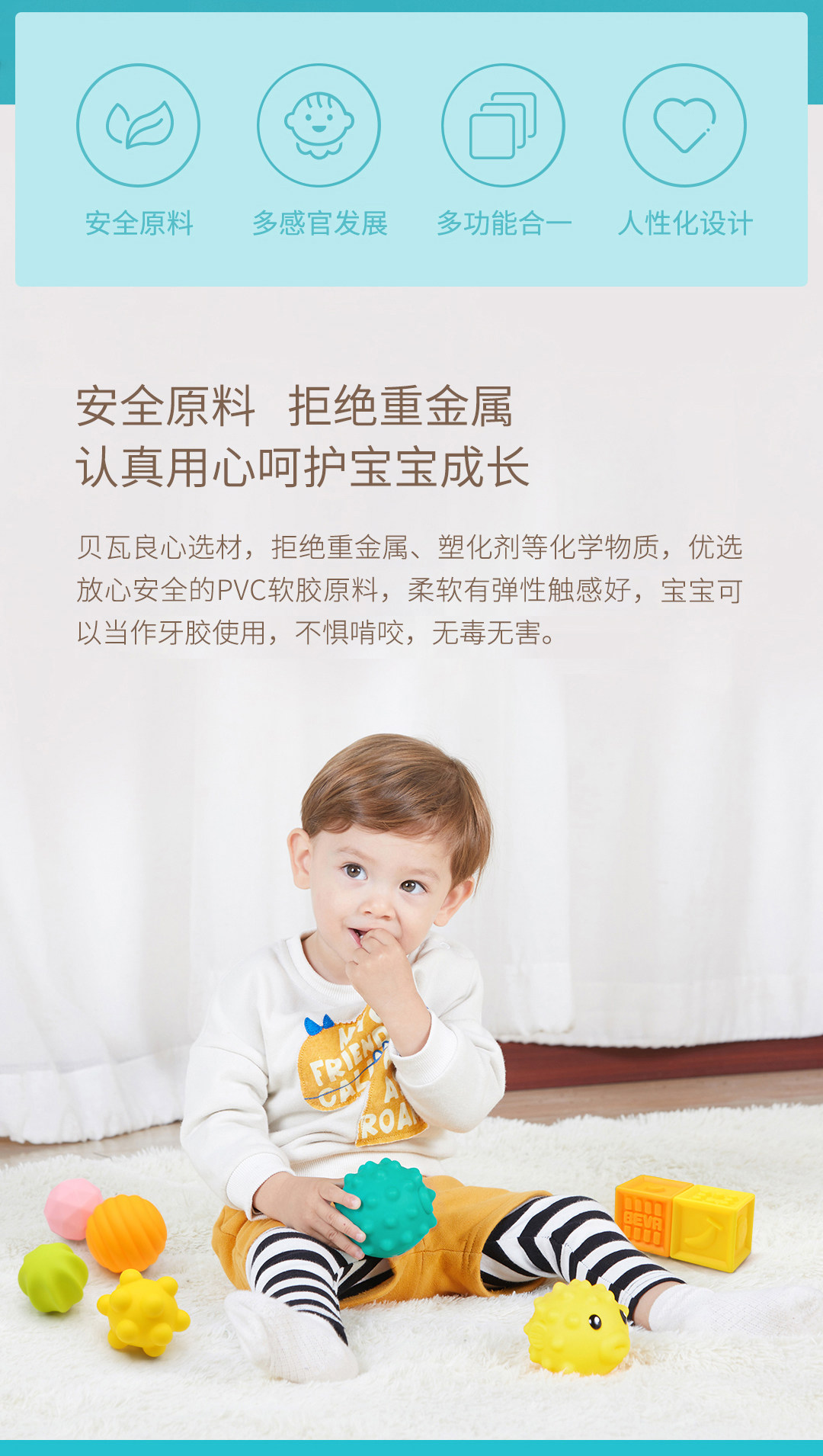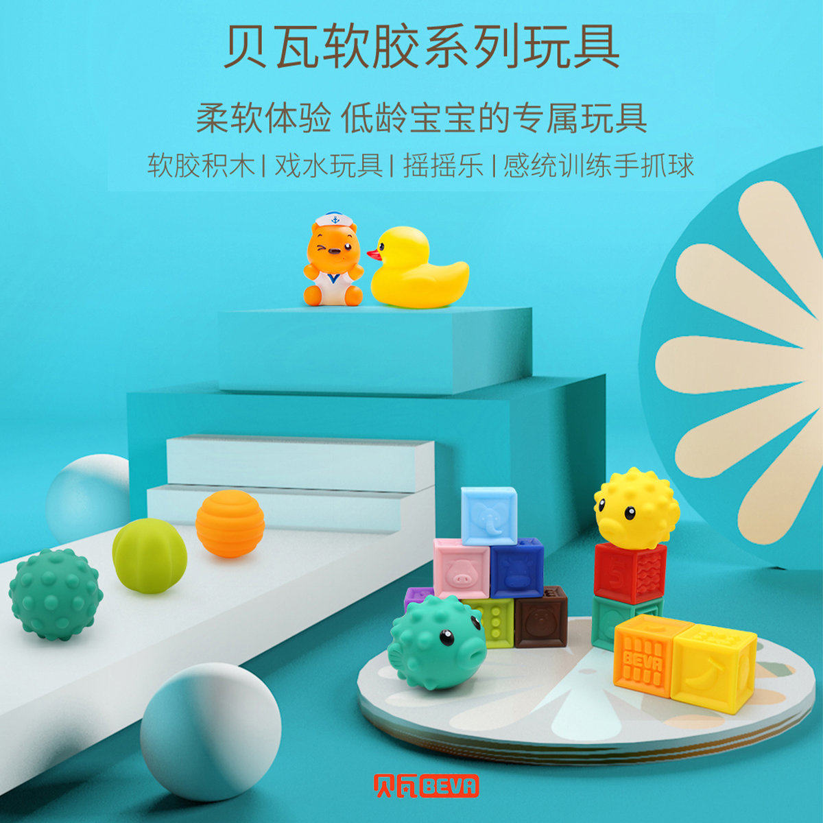 贝瓦 Игрушка из мягкой резины, конструктор для новорожденных, мячик для рук для развития сенсорики, тактильные ощущения