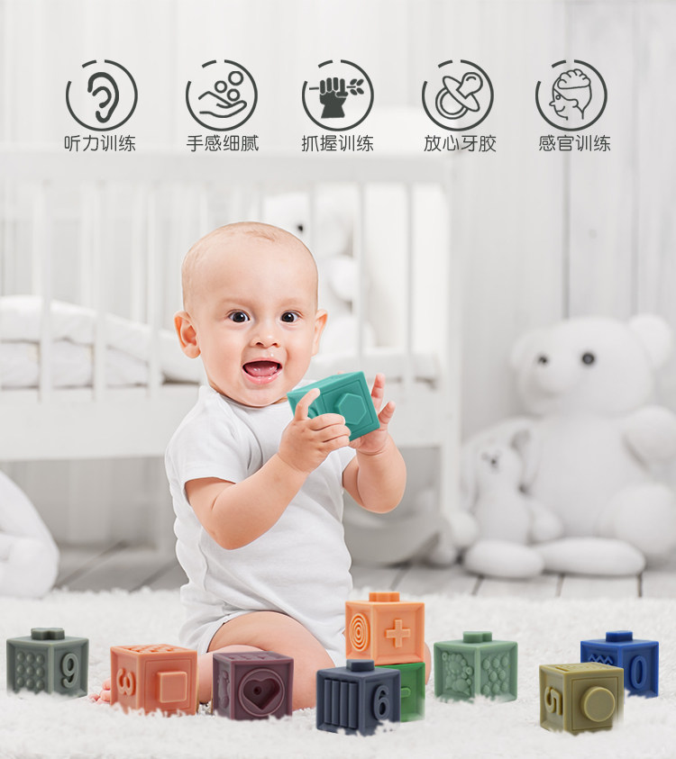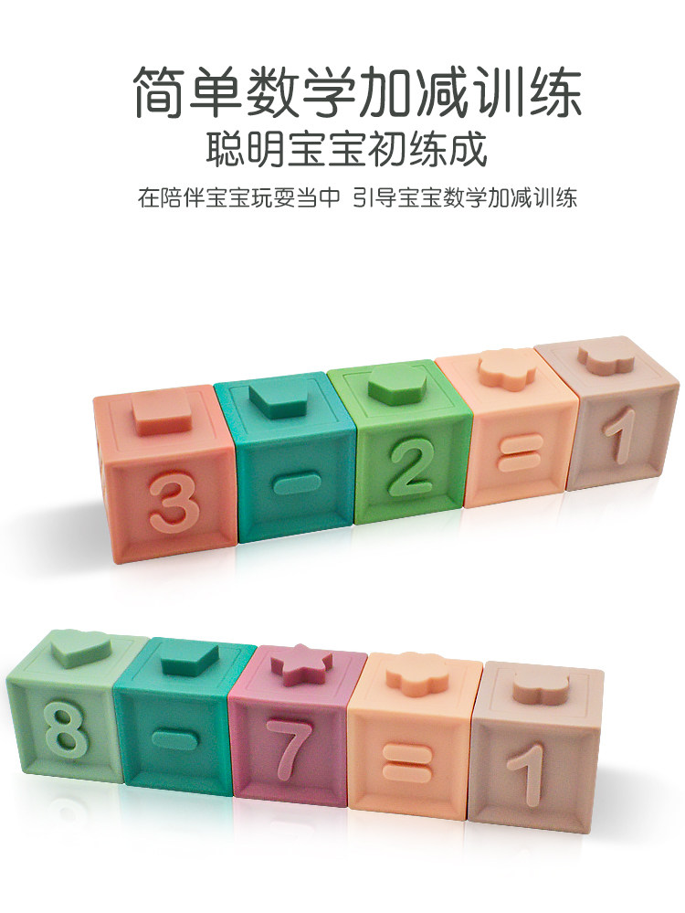 Прорезыватель для детских зубов, детский цифровой конструктор из мягкой резины, силиконовая игрушка, можно грызть, раннее развитие