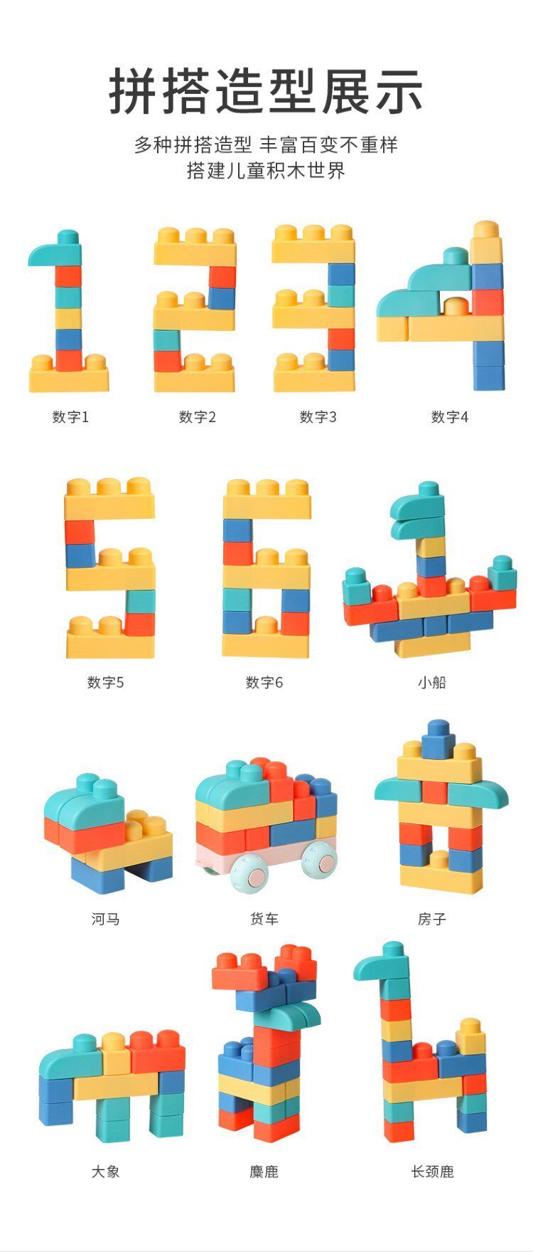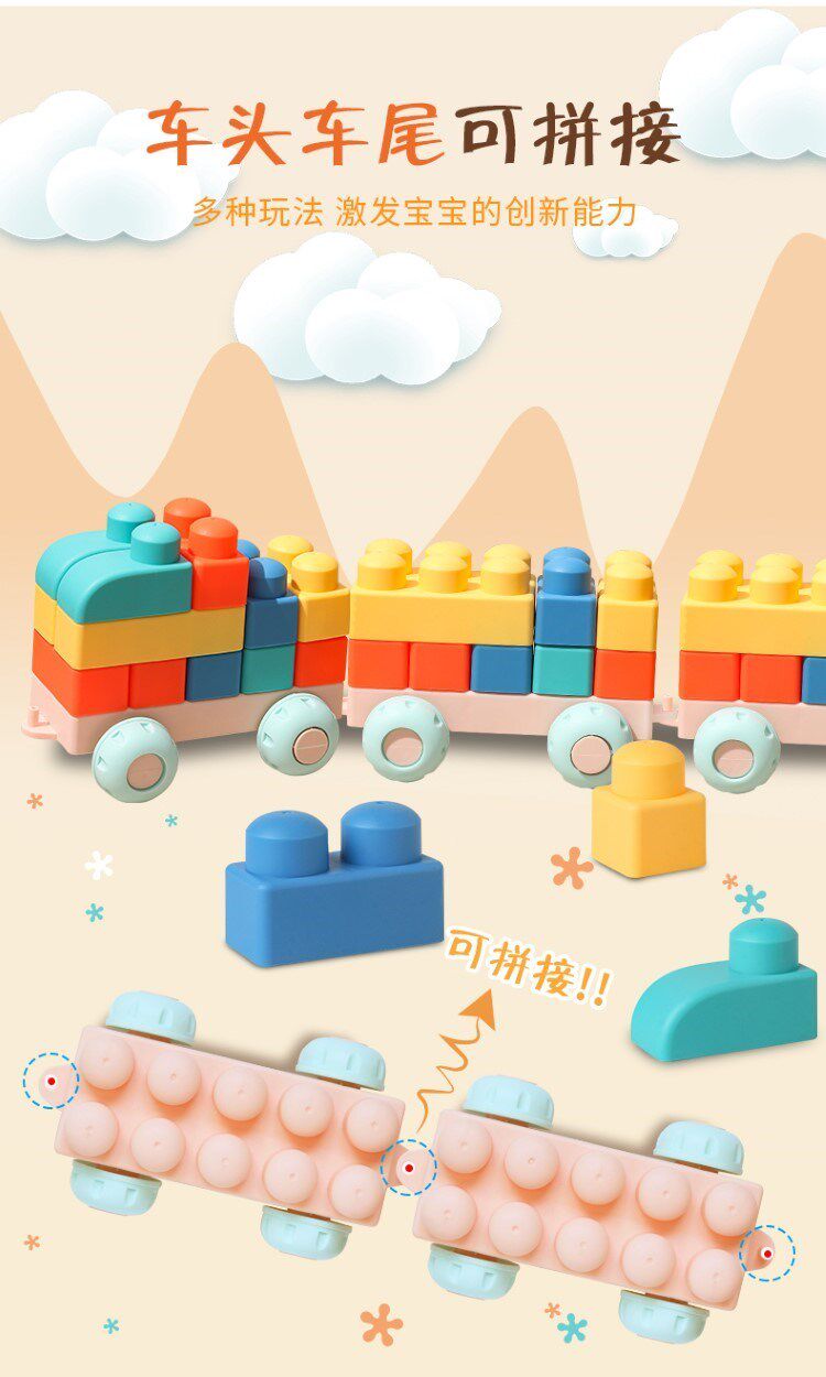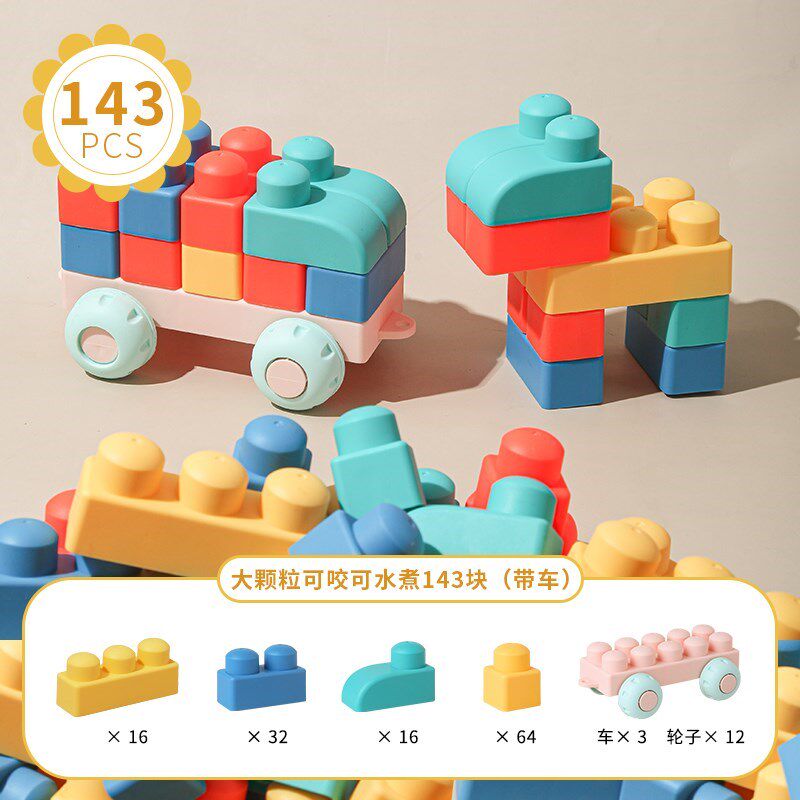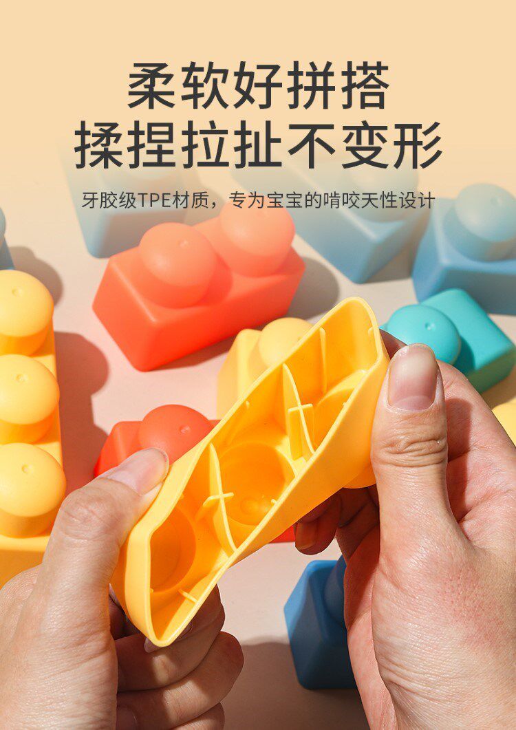 Игрушки-конструкторы из мягкой резины для детей старше 6 месяцев, мальчиков и девочек, крупные частицы силикона, которые могут жевать дети от 1 до 3 лет и 2 девочки.