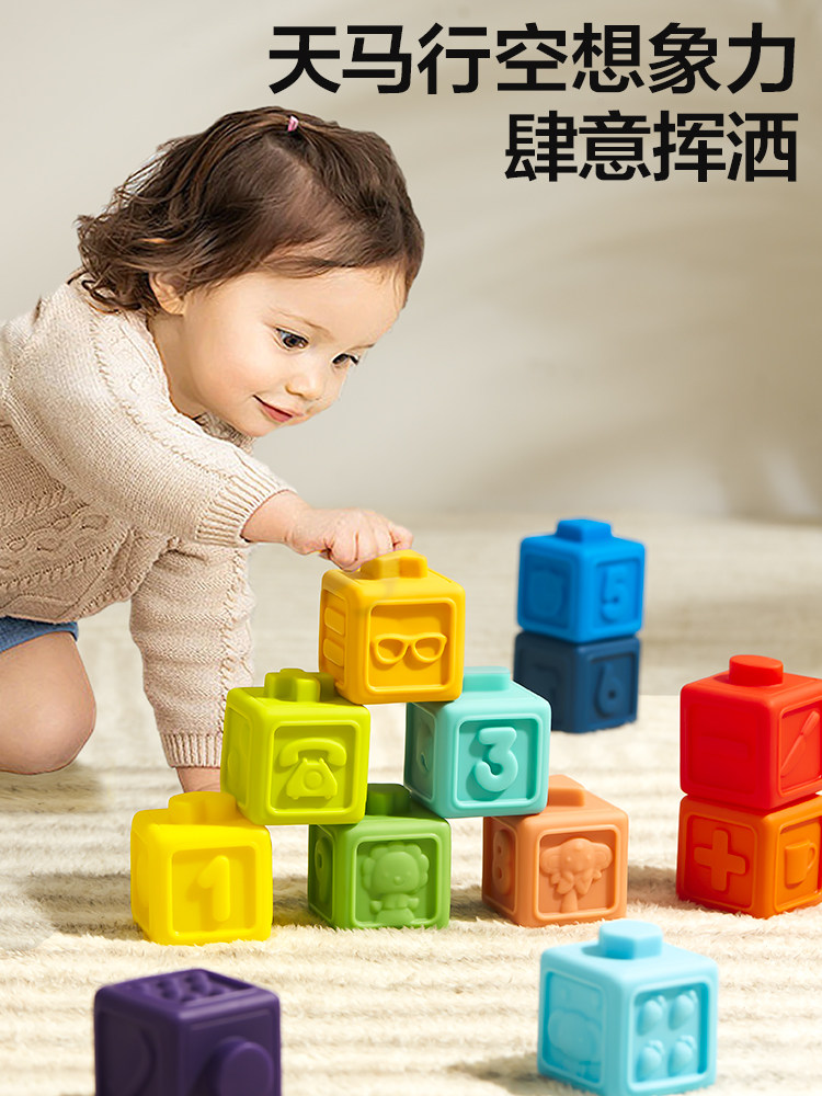 Конструктор из мягкой резины, игрушка для младенца, силиконовая дженга, можно грызть, 1 лет, 12 мес.