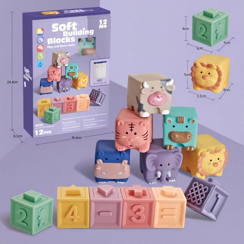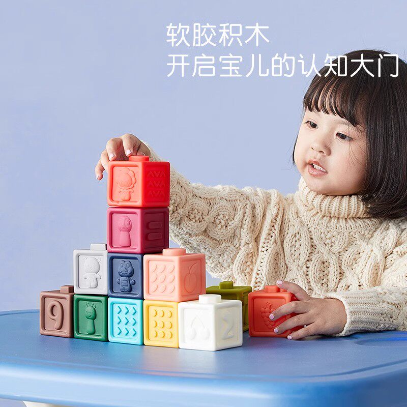 Конструктор из мягкой резины для младенца, силиконовая дженга, игрушка, 6 мес., можно грызть, раннее развитие