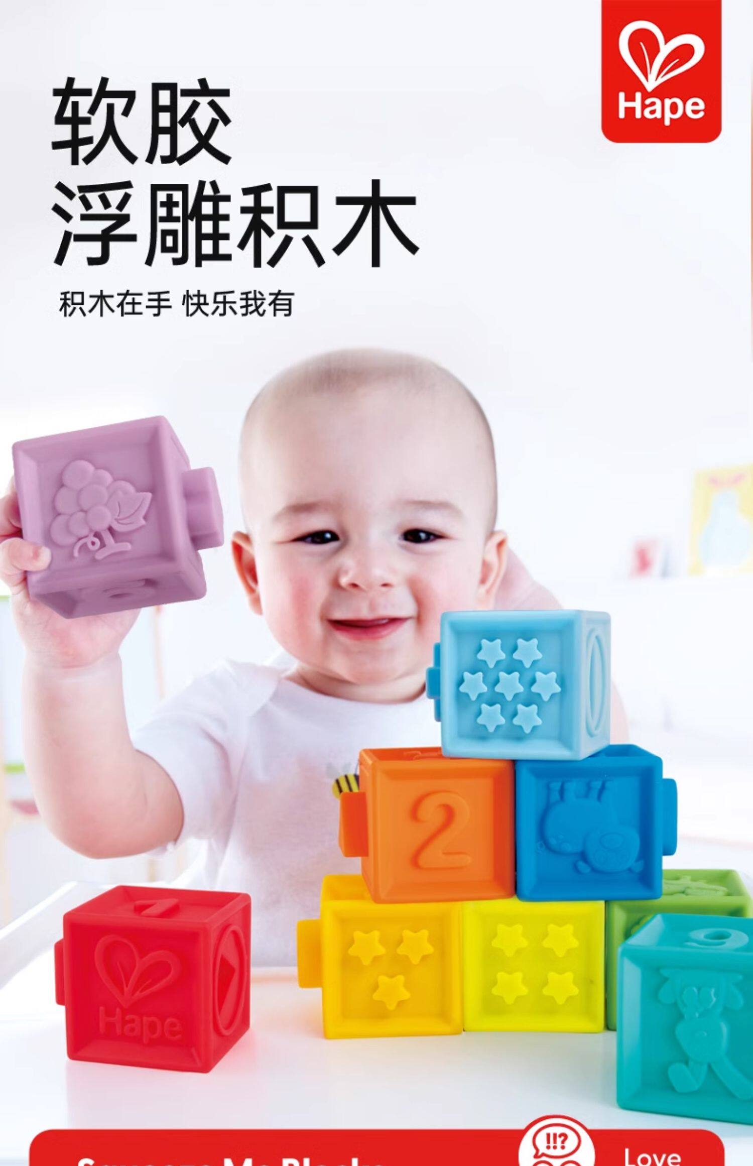 Hape Конструктор из мягкой резины, интеллектуальная игрушка, дженга, 6-12 мес., раннее развитие