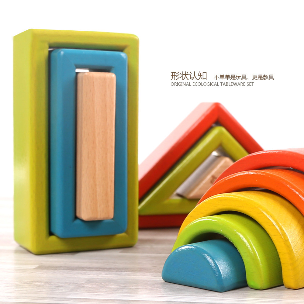 Радужный конструктор, деревянная игрушка из натурального дерева для младенца, 1-2-3 лет, раннее развитие