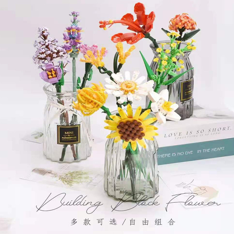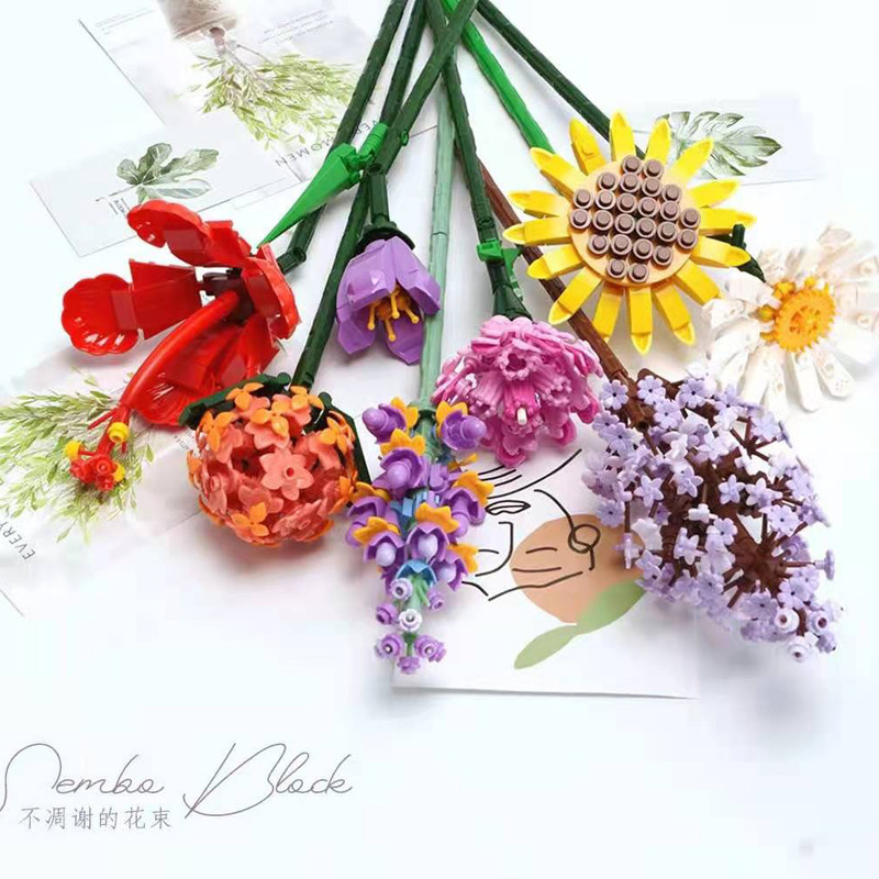 Конструктор, мелкие частицы, DIY, букет, подарок на день рождения