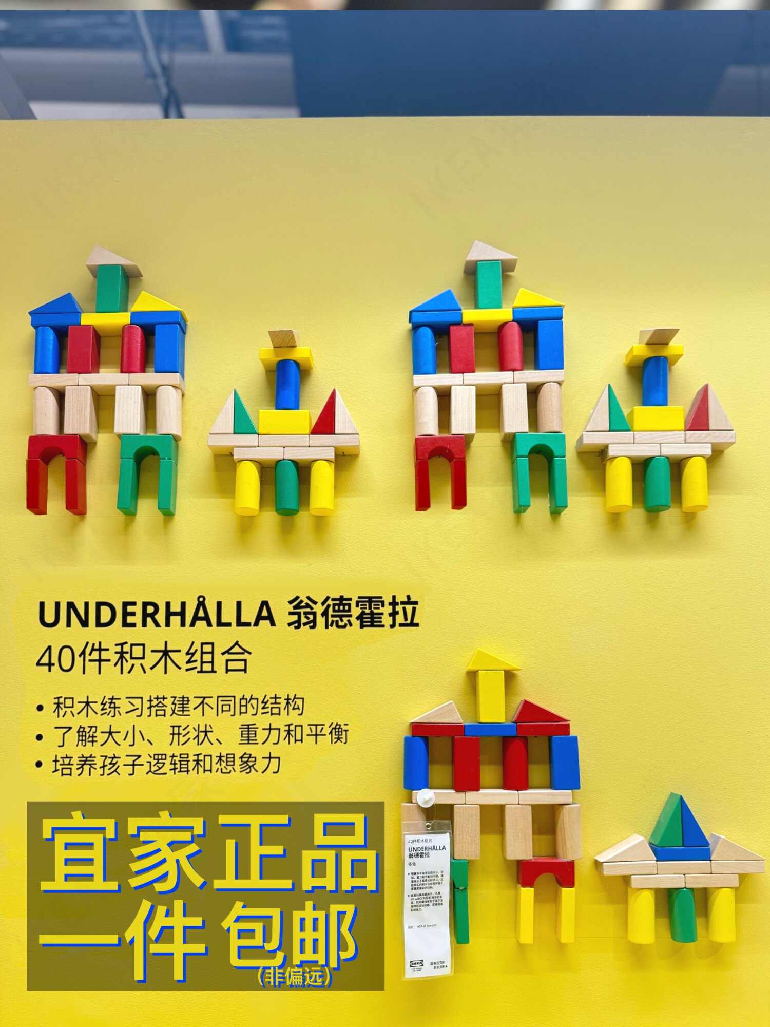 IKEA/宜家 Деревянный конструктор, интеллектуальная игрушка, 40 шт, интеллектуальное развитие