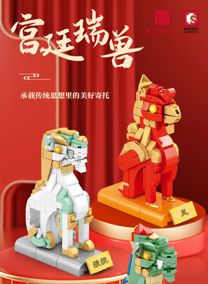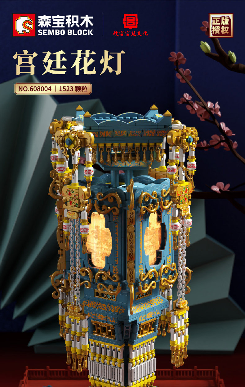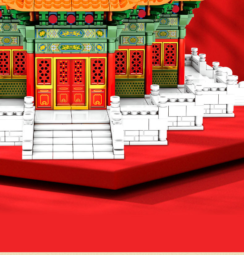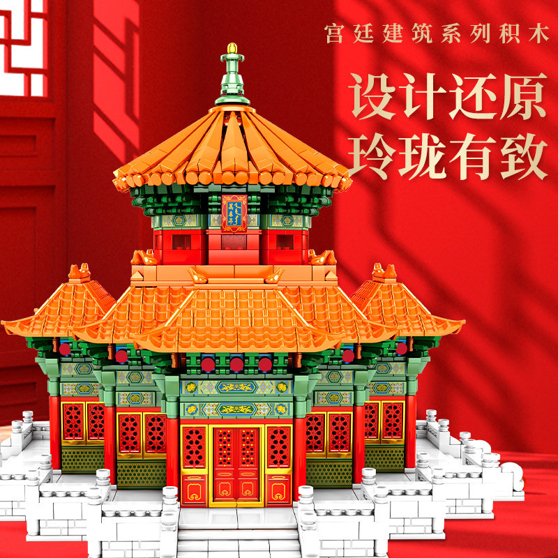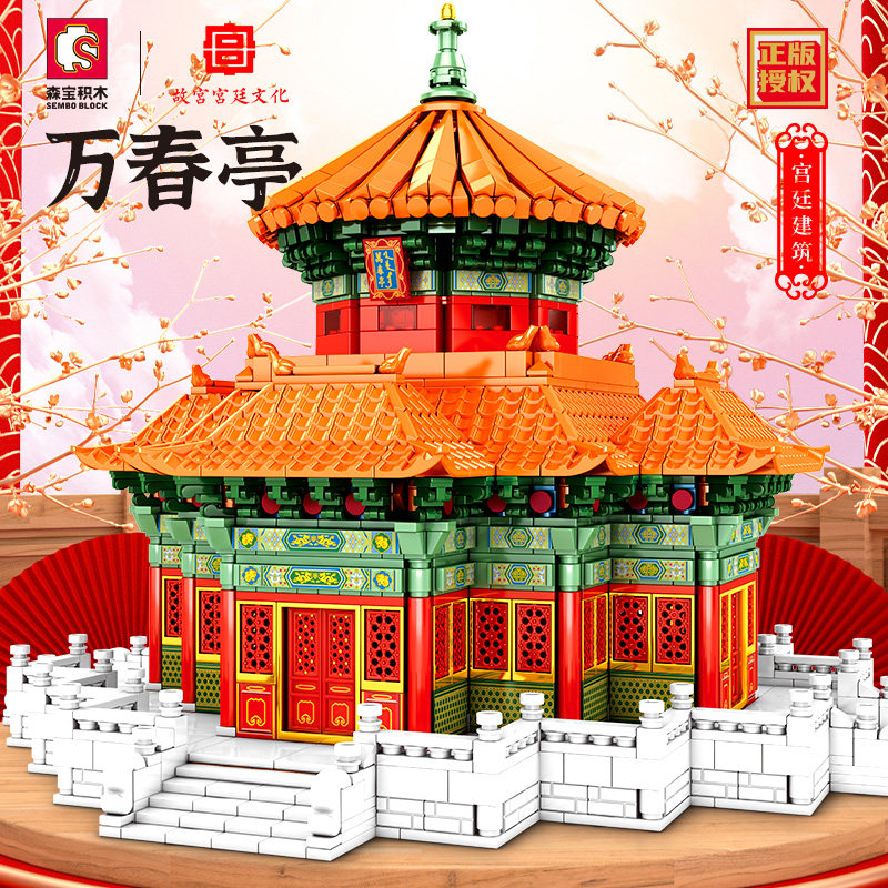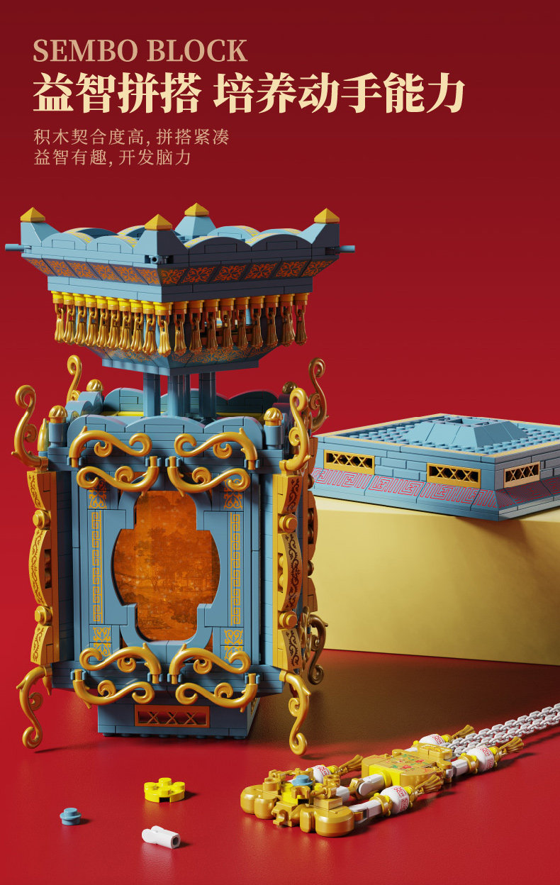 森宝积木 Запретный город, благоприятные украшения в виде животных, деформация, собранная из мелких частиц, древний стиль, архитектурная модель, дворец, фонарь, праздничный подарок для женщин