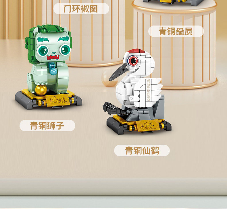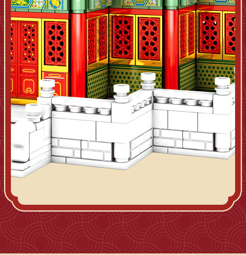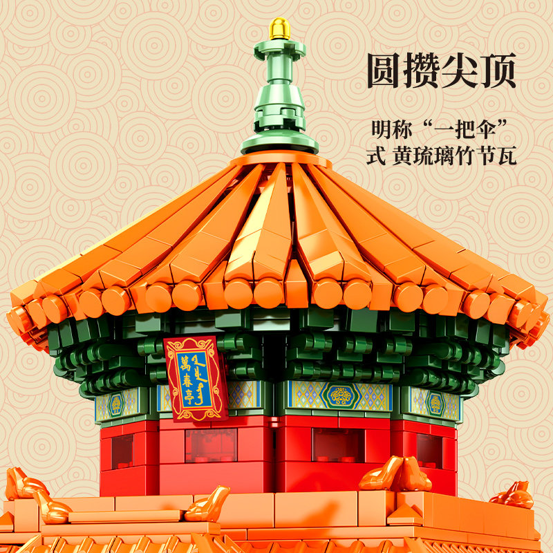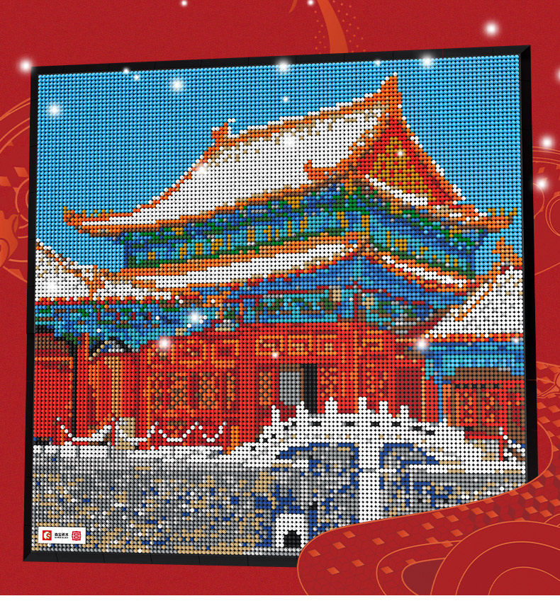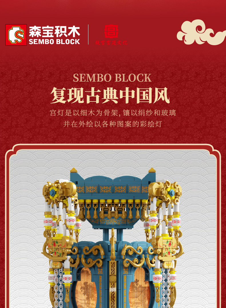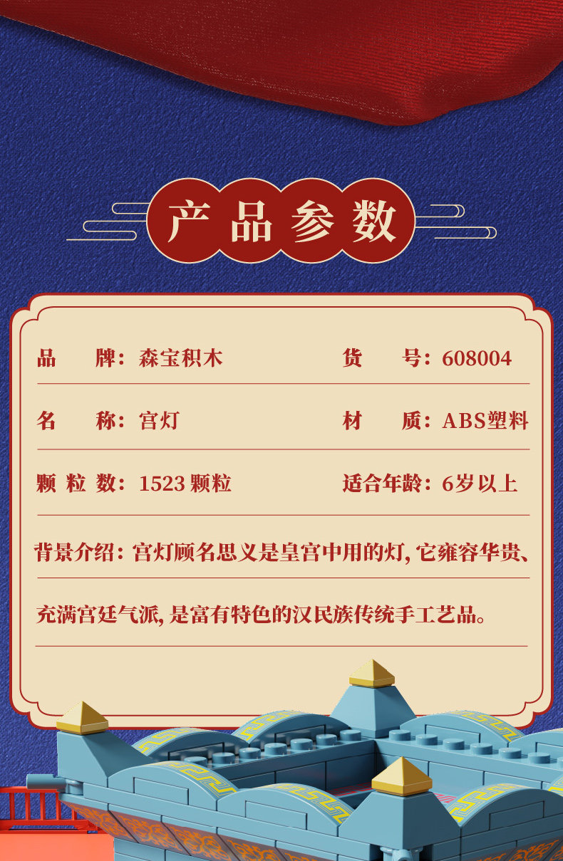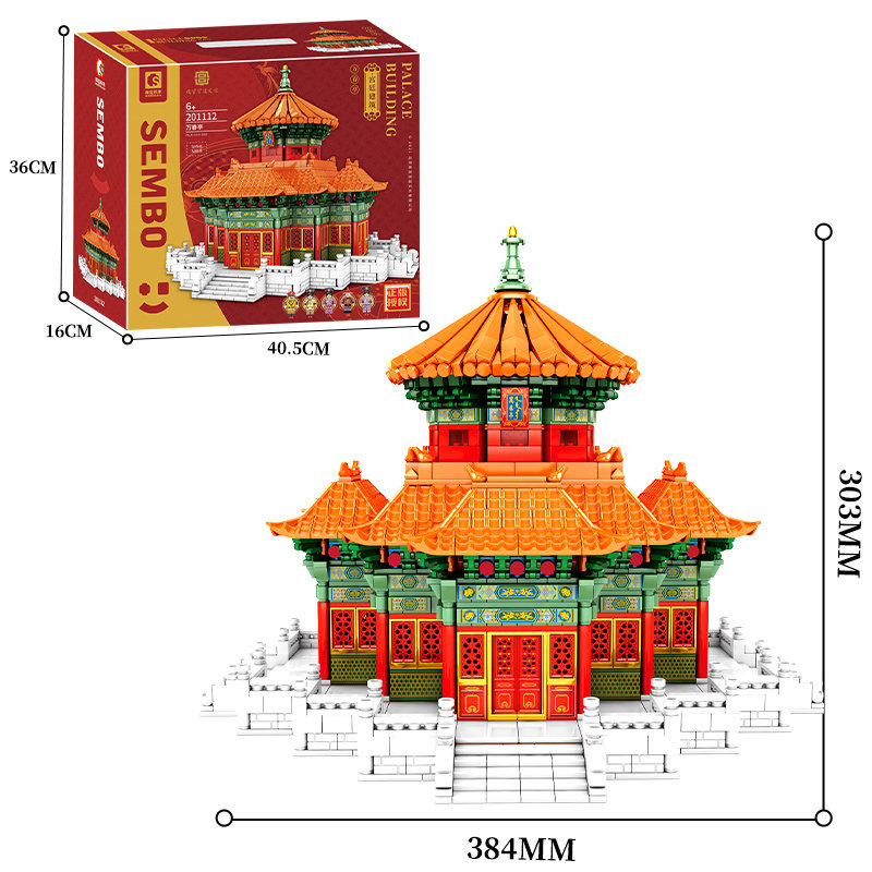 森宝积木 Запретный город, благоприятные украшения в виде животных, деформация, собранная из мелких частиц, древний стиль, архитектурная модель, дворец, фонарь, праздничный подарок для женщин