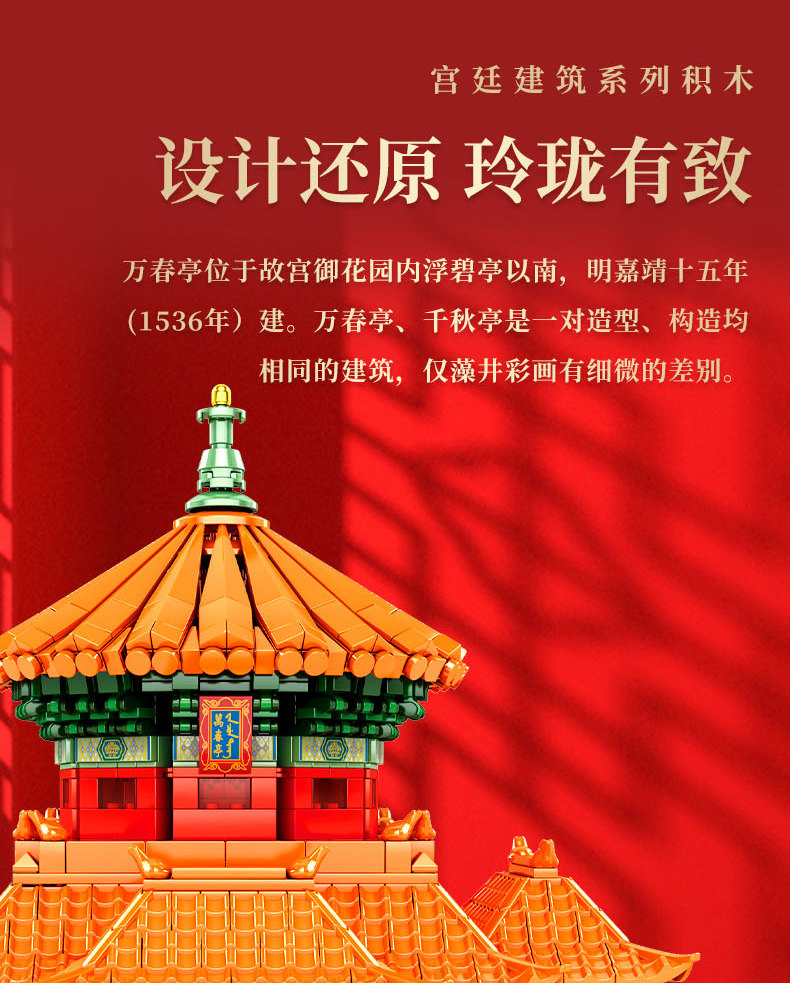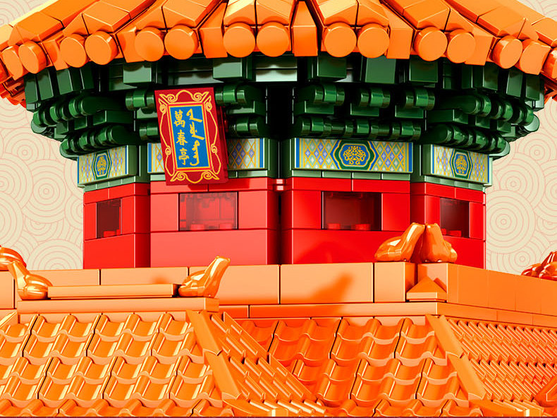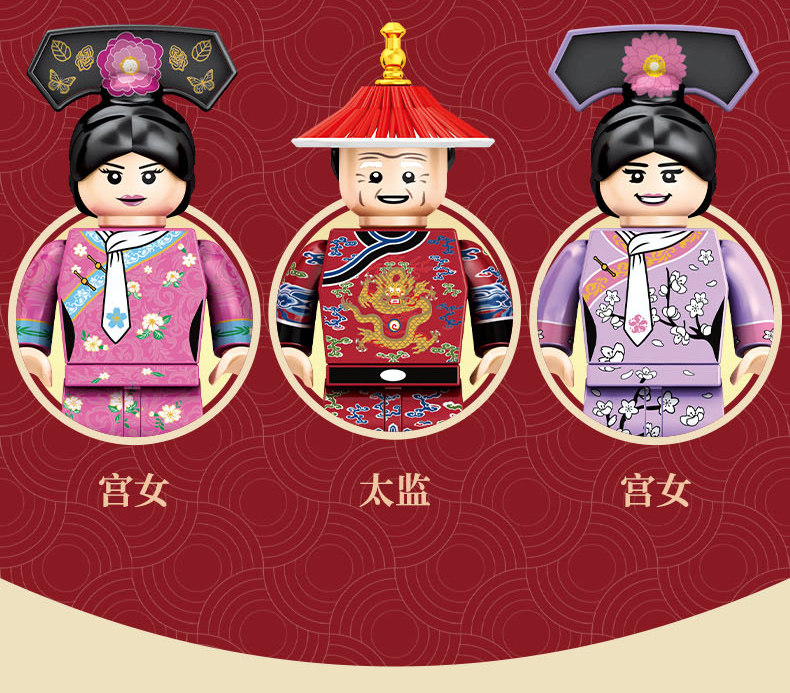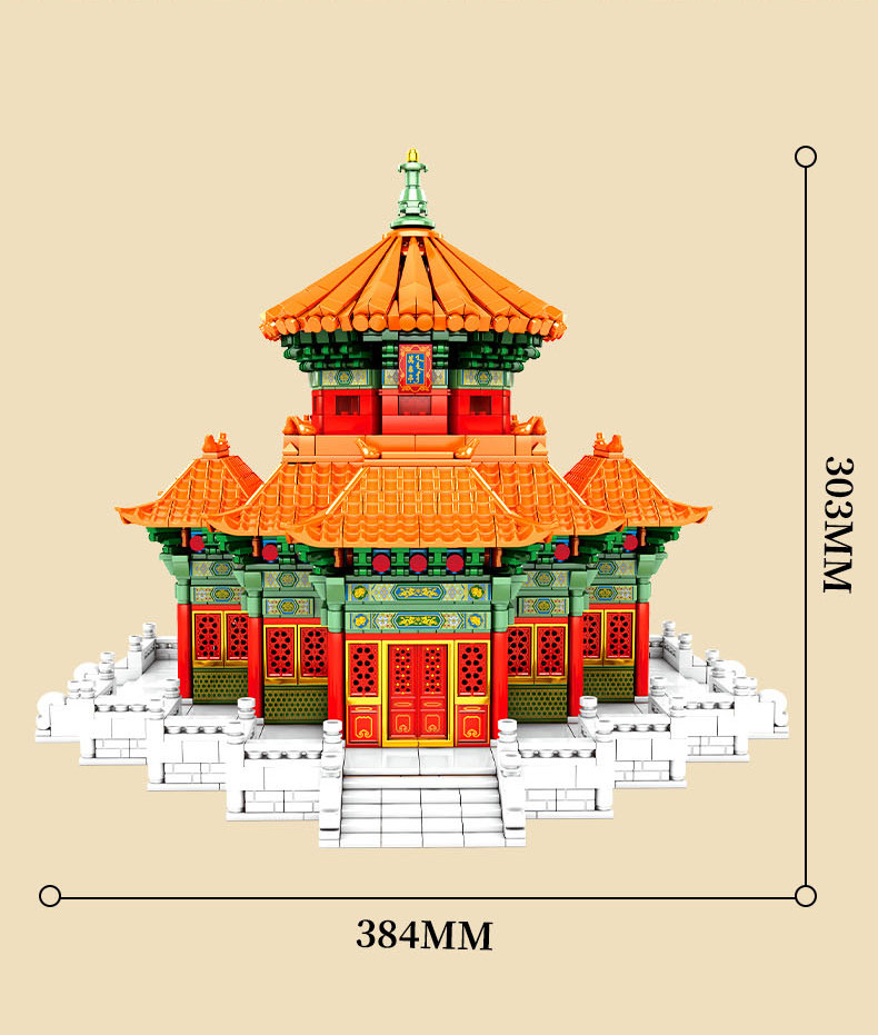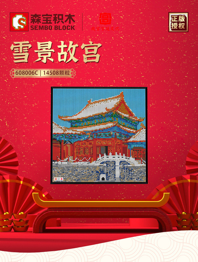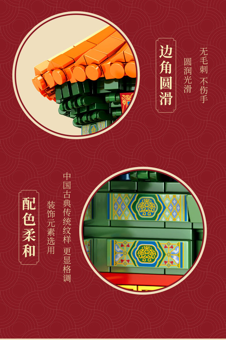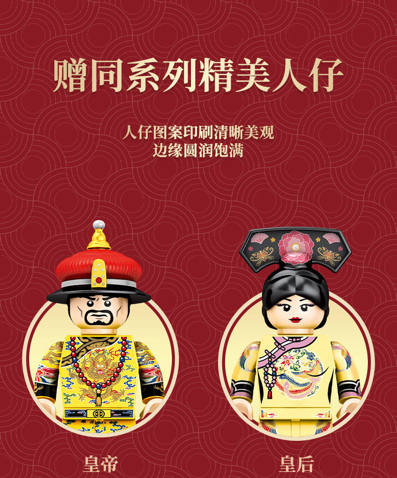 森宝积木 Запретный город, благоприятные украшения в виде животных, деформация, собранная из мелких частиц, древний стиль, архитектурная модель, дворец, фонарь, праздничный подарок для женщин