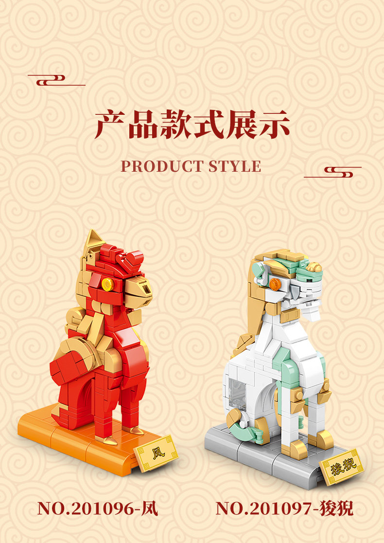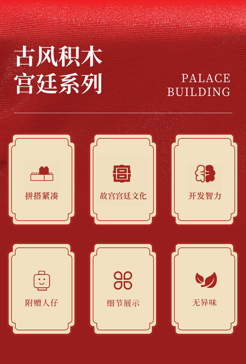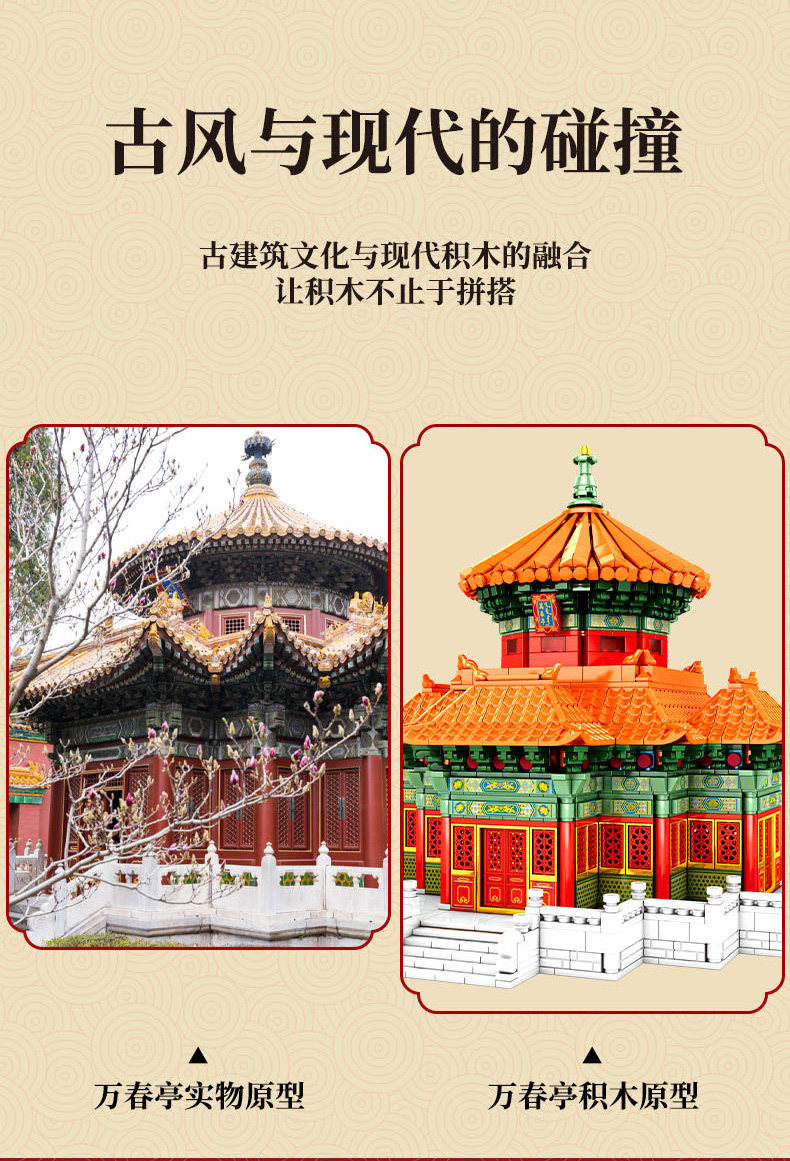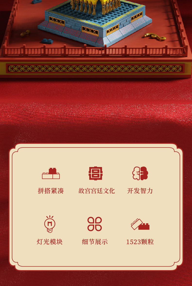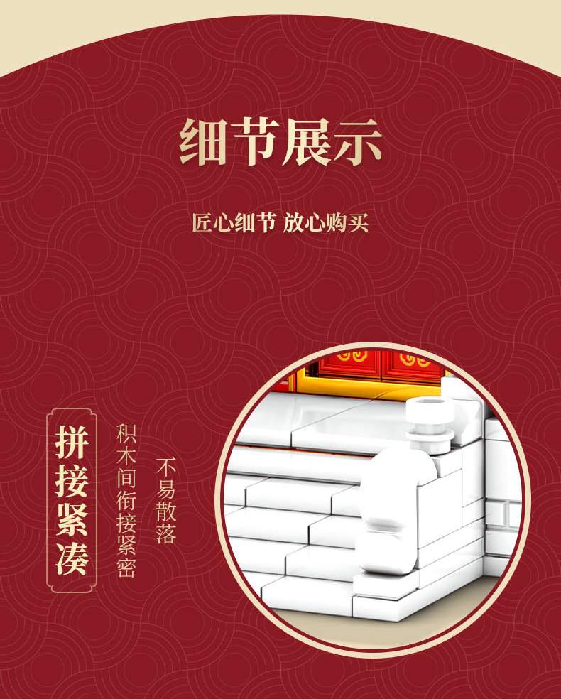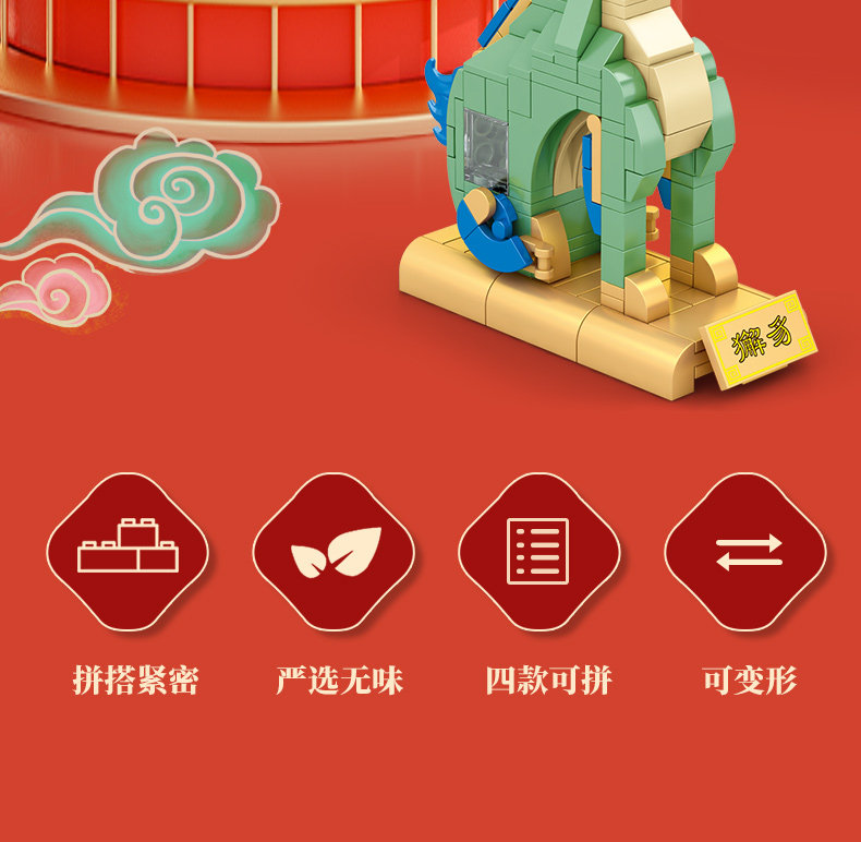 森宝积木 Запретный город, благоприятные украшения в виде животных, деформация, собранная из мелких частиц, древний стиль, архитектурная модель, дворец, фонарь, праздничный подарок для женщин