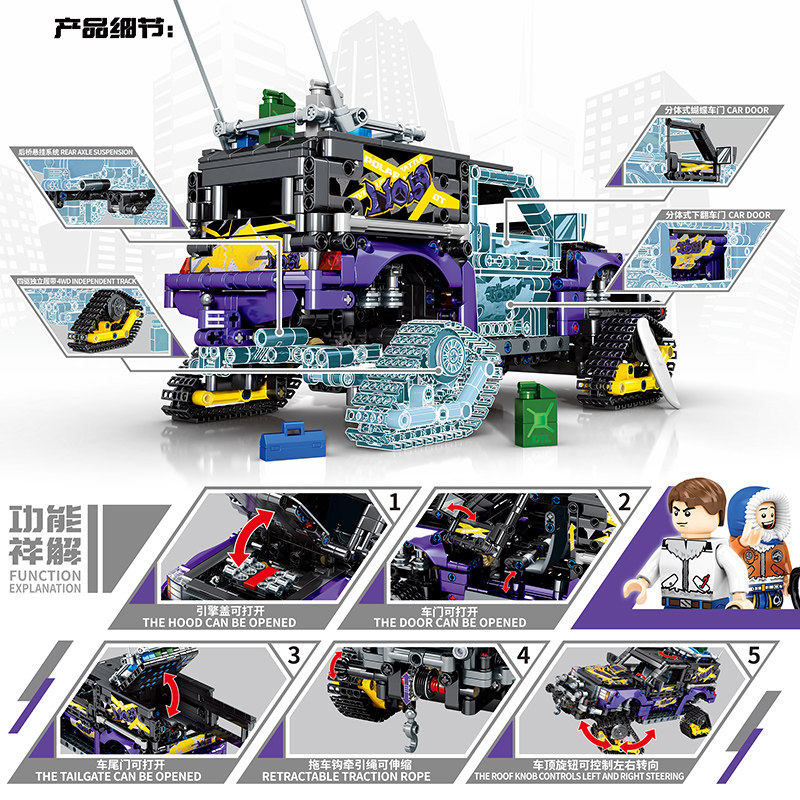 Конструктор, внедорожник, механическая игрушка, дистанционное управление, мелкие частицы, подарок на день рождения