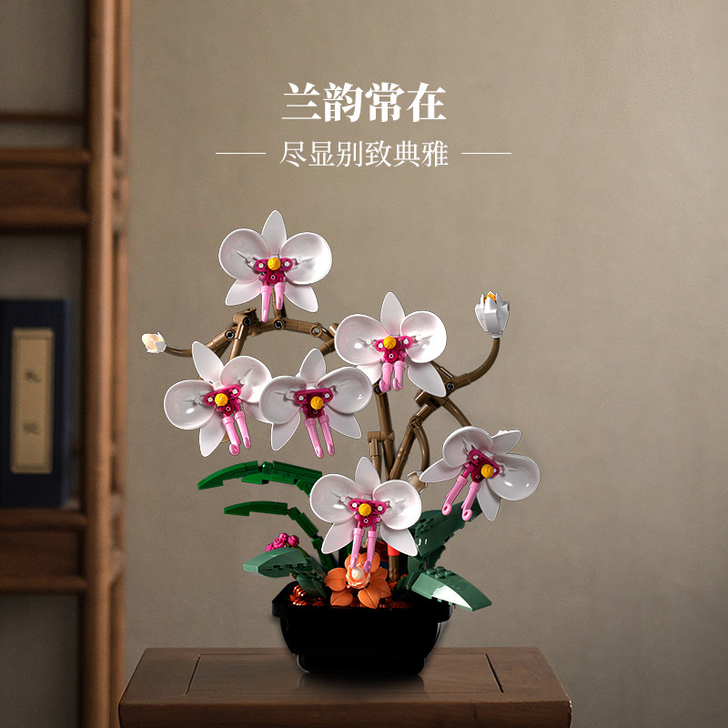 Конструктор, реалистичный цветочный горшок с бабочкой, подарочная коробка для гостиной, орхидея, букет