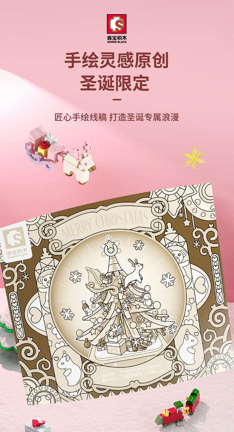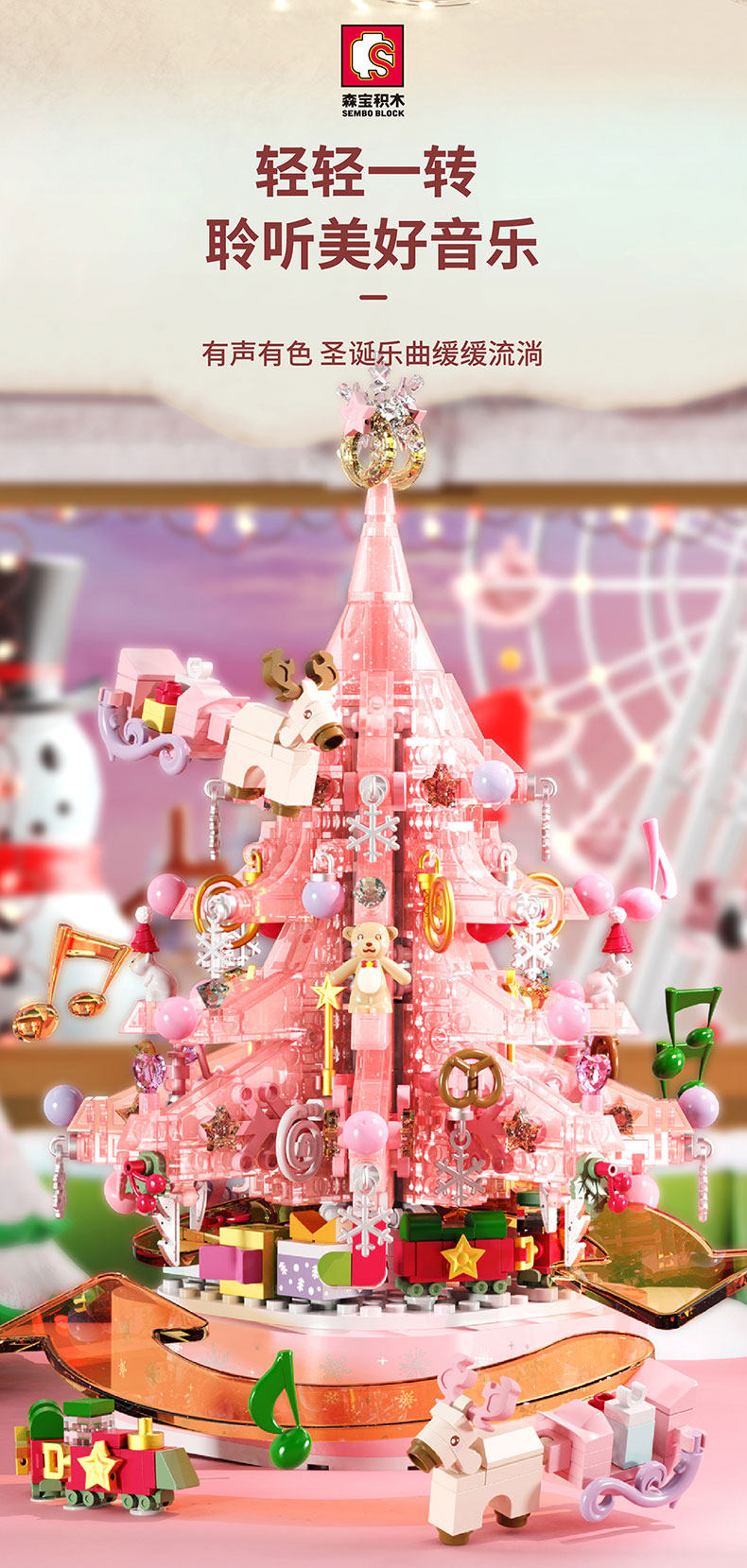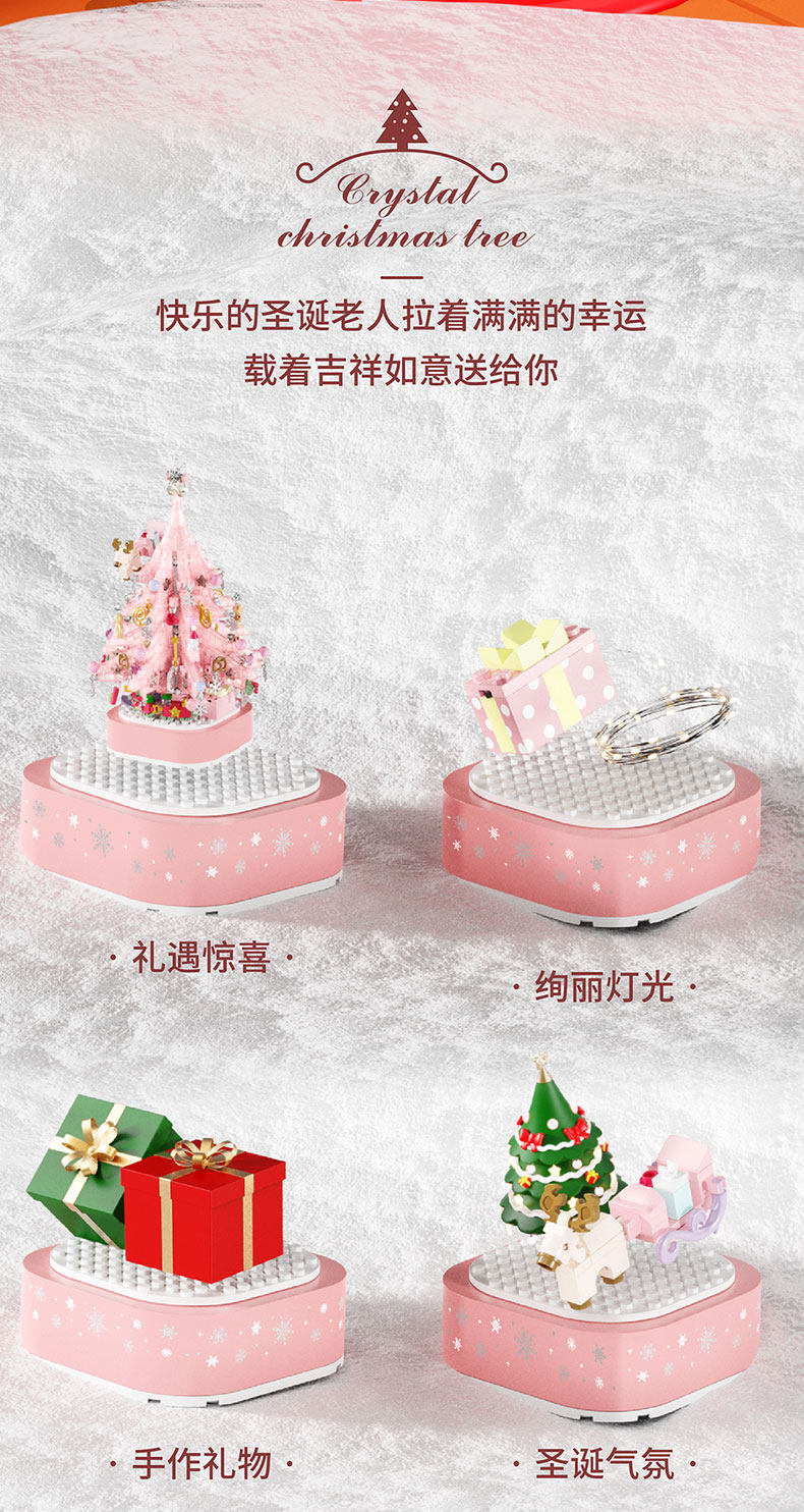 Розовая музыкальная шкатулка, крутящийся рождественский конструктор, подарок на день рождения, коллекция 2022
