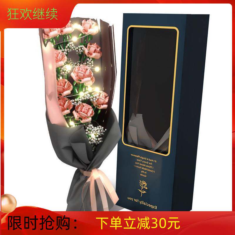 Китайский розовый конструктор, игрушка, букет, розы, в цветочек, подарок на день рождения
