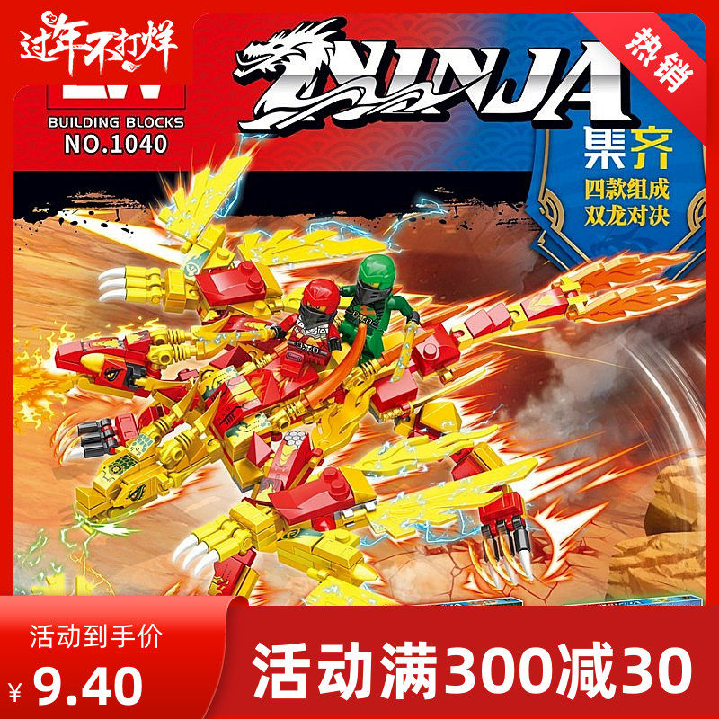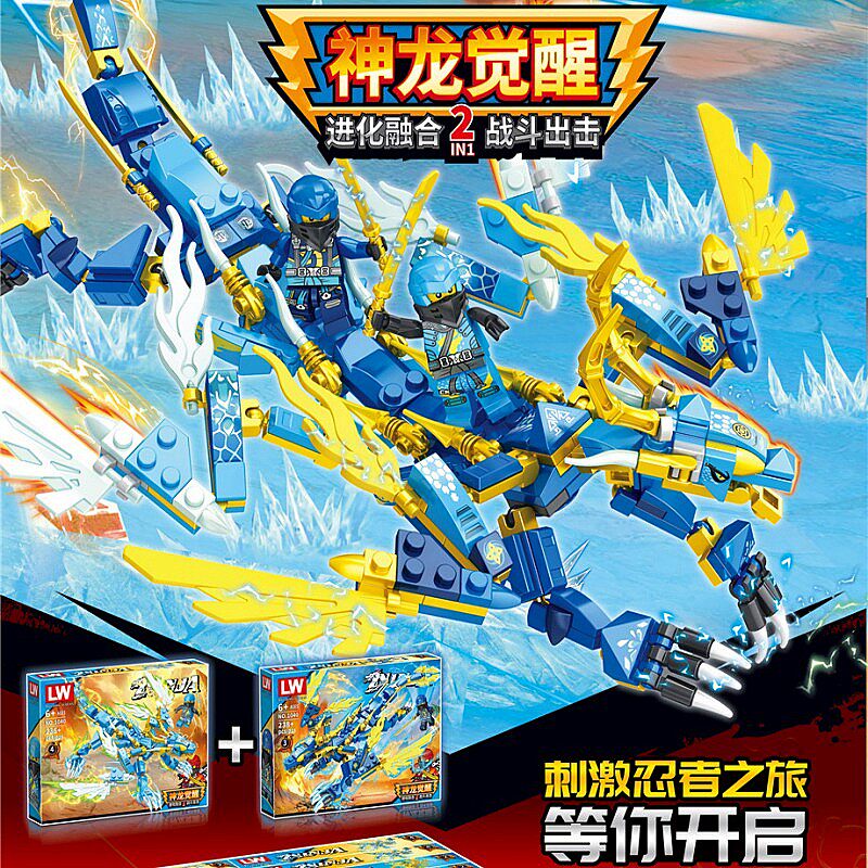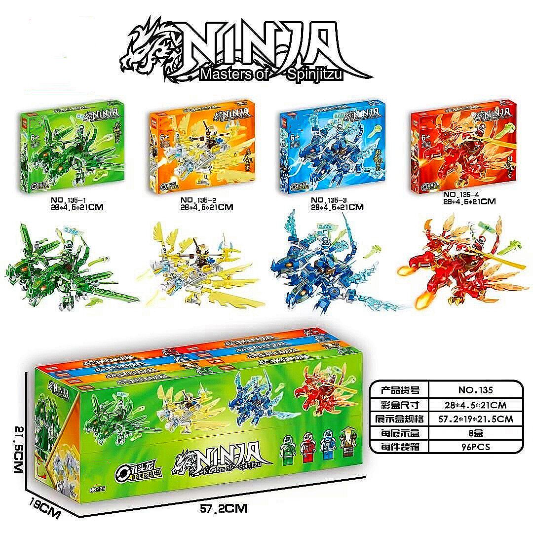 Lewan 1040 Phantom Ninja Elements Shenlong 4 -In 2 Huang Shuanglong, чтобы собрать строительные блоки Toy Boy Gift 6+