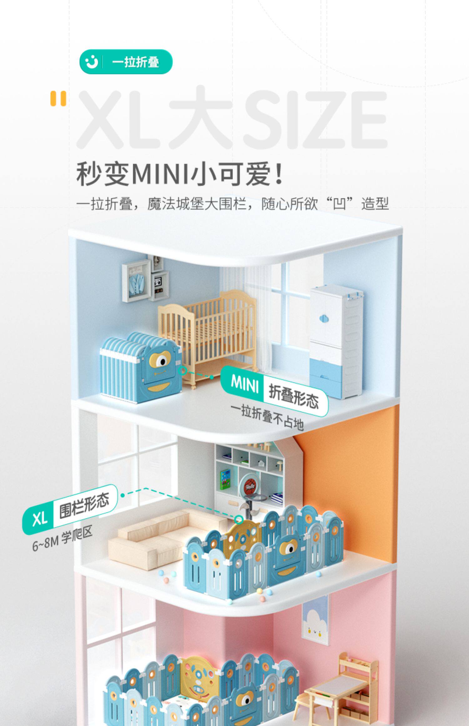 - Забор (14+2) + коврик для ползания толщиной 180*144*2 см-(милый монстрик)