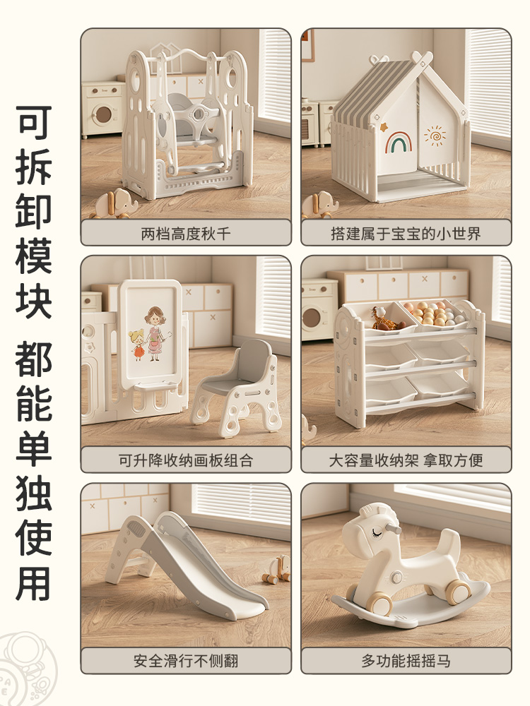 - Домик, качели, горка, система хранения, доска для рисования для ползания, 200x, 2см