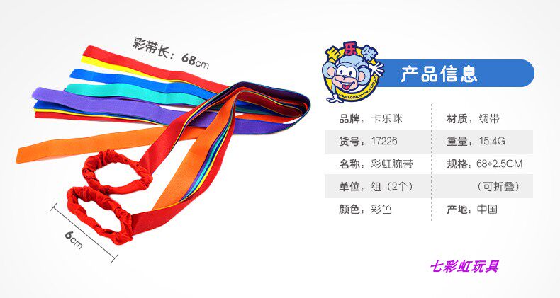 卡乐咪 Радужный браслет, гимнастическая многоцветная детская лента, игрушка, 6 цветов, раннее развитие