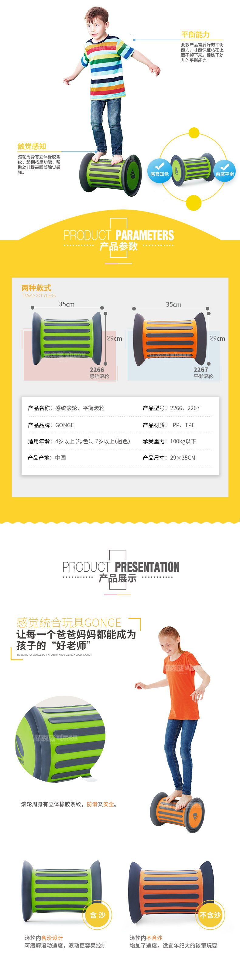 Дания Gonge Senior Roller Kids Training Toys Baby Tental Balancing Roller Roller увеличится 2266