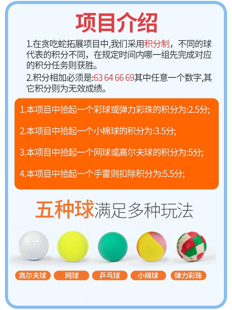 | Цвет: | Две группы A (8-16 человек), Пакет B Две группы (8-16 человек), Пакет C четыре группы (16-36 человек), Пакет D четыре группы (16-36 человек), Хлопковые шарики, 10 шт, 10 теннисных мячей, 10 эластичных бусин 10, 30 цветных шариков, 10 шаров для гольфа, Повязка для глаз, 10 шт, 10 гранат, 100 метров 100 метров, Складывание маленькой бочки*2 |