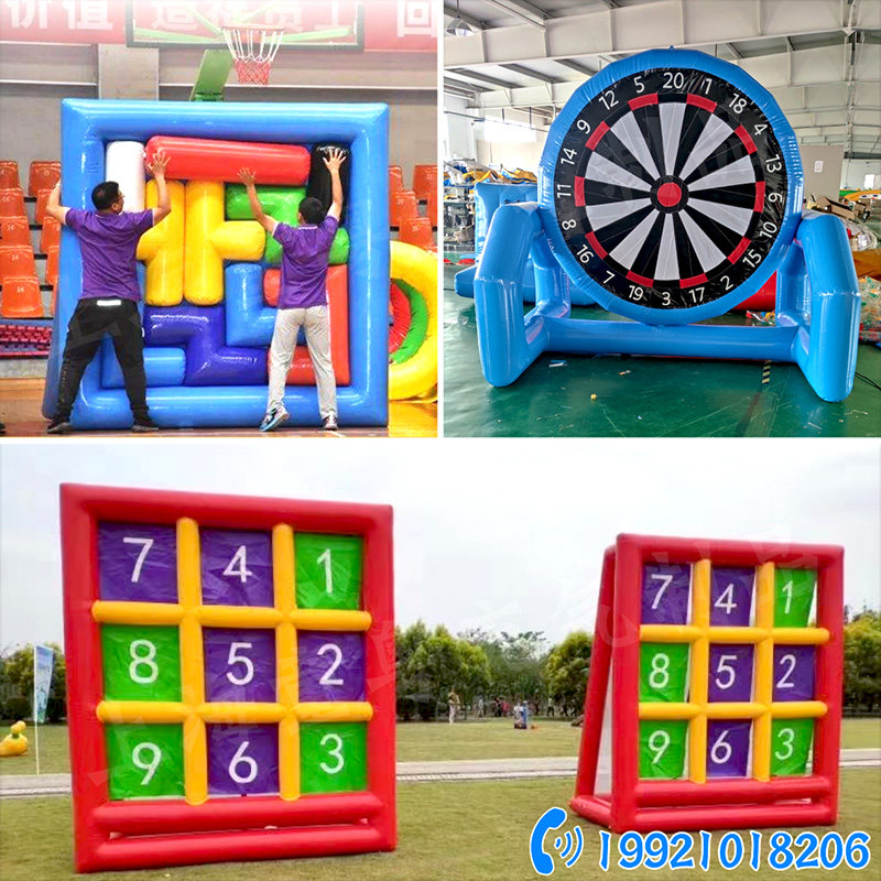 Надувной футбол, дротики, баскетбольный тетрис, ханойская башня